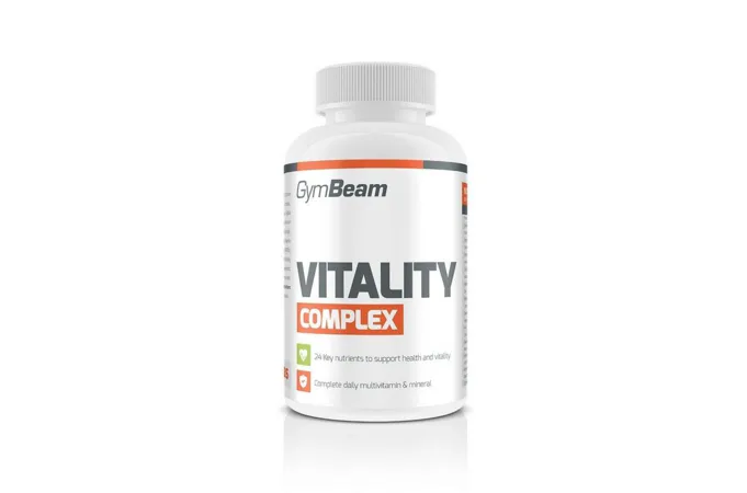 Produkt Multivitamín Vitality complex od GymBeam obsahuje optimálnu dávku vitaminu C, vitamín E, vitamíny skupiny B, a navyše aj ďalšie aktívne zložky, ako je ginko biloba, či minerály, ako zinok, horčík, kremík, železo, selén.