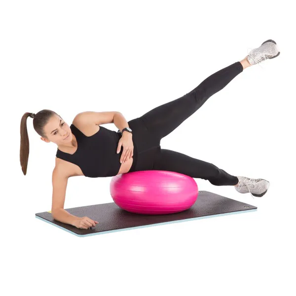 Charakteristickým rysom lopty je jej sploštený tvar, ktorý zaisťuje lepšiu stabilitu pri cvičení. Otvor uprostred tiež výrazne zvyšuje pohodlie pri tréningu.