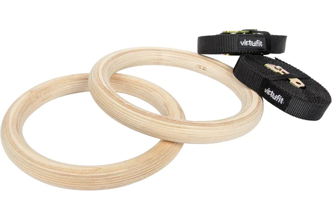 Cvičenia zamerané na tlaky, ťahy alebo stabilitu, kde je základom vaša vlastná telesná hmotnosť, to je cvičenie s gymnastickými kruhmi VIRTUFIT Wooden Gym Rings. Tieto odolné kruhy zavesíte, kamkoľvek chcete, a potom ste okamžite pripravení začať s tréningom celého tela. Môžete nekonečne meniť cviky, ktoré trénujú brušné svaly, tricepsy, bicepsy, ramená, chrbát, hrudník, nohy a stred tela.