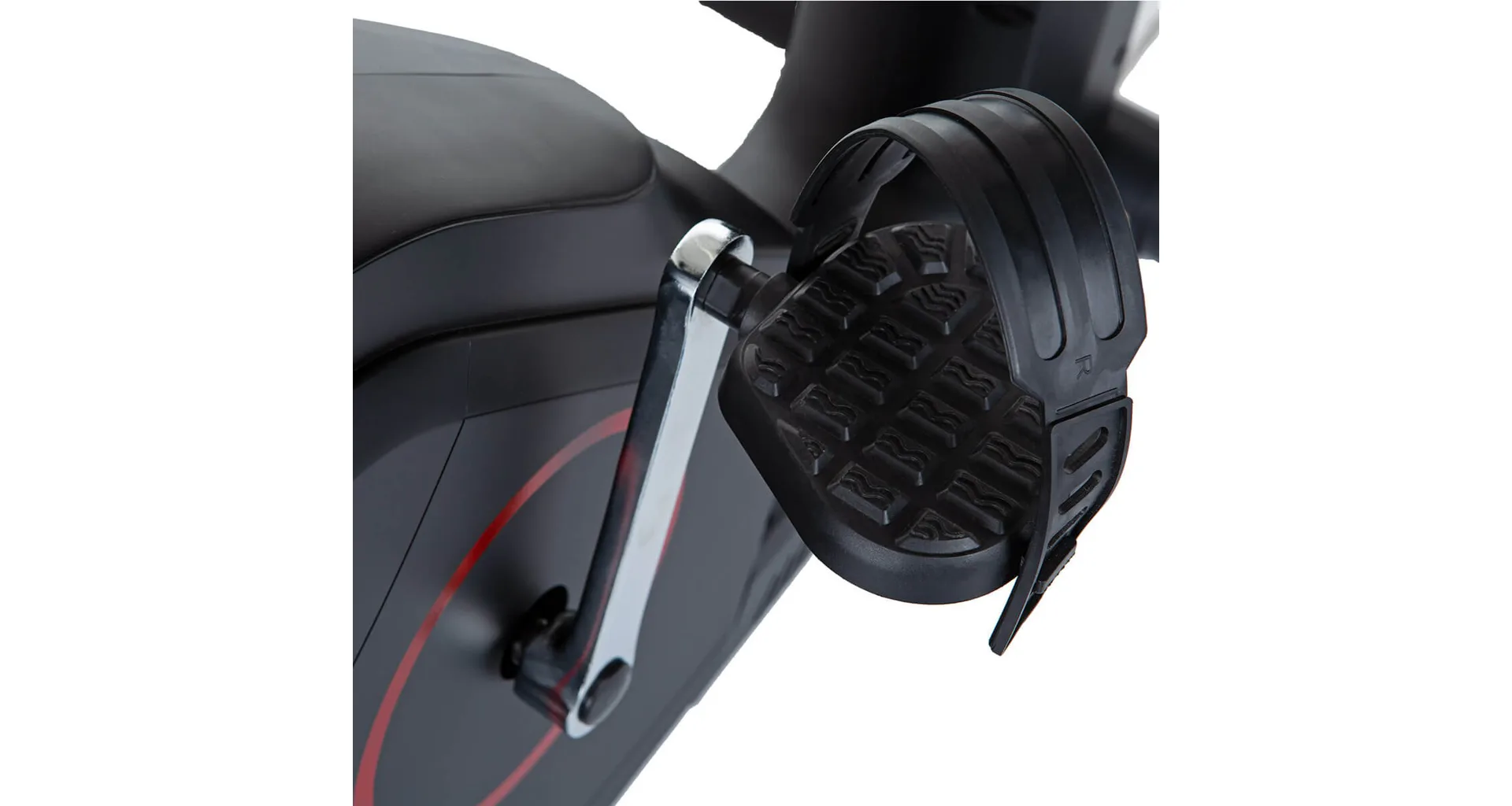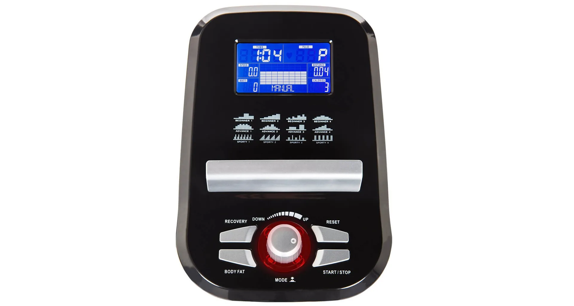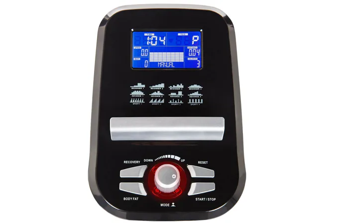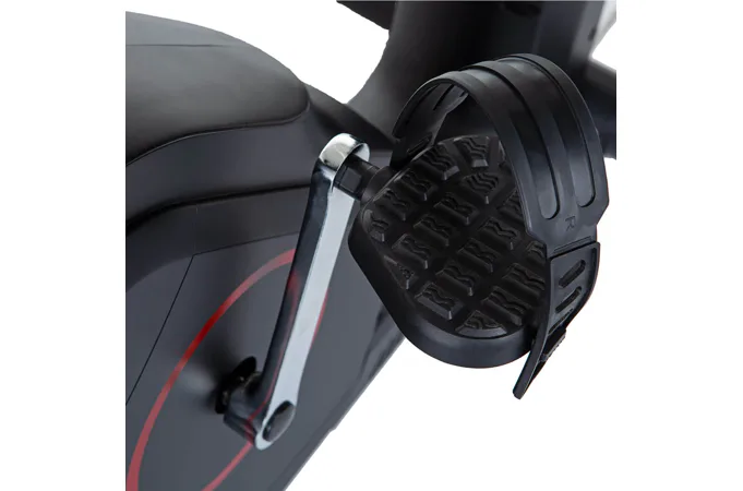 Šlapací střed je plně osazen ložisky, kalibrovaný setrvačník o hmotnosti 8 kg a moderní magnetická brzda zajišťuje tichý a plynulý chod stroje i při maximálním zatížení. Dostatečný rozsah zátěže v 16-ti stupních (10 - 350 W) se zobrazuje přímo na displeji počítače a nastavuje se buď prostřednictvím tlačítek či přednastavených programů.