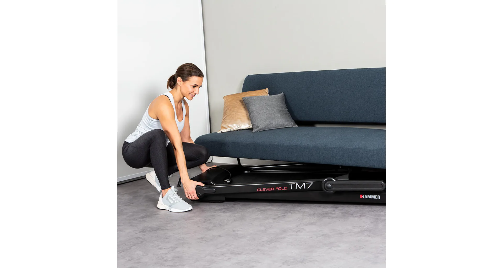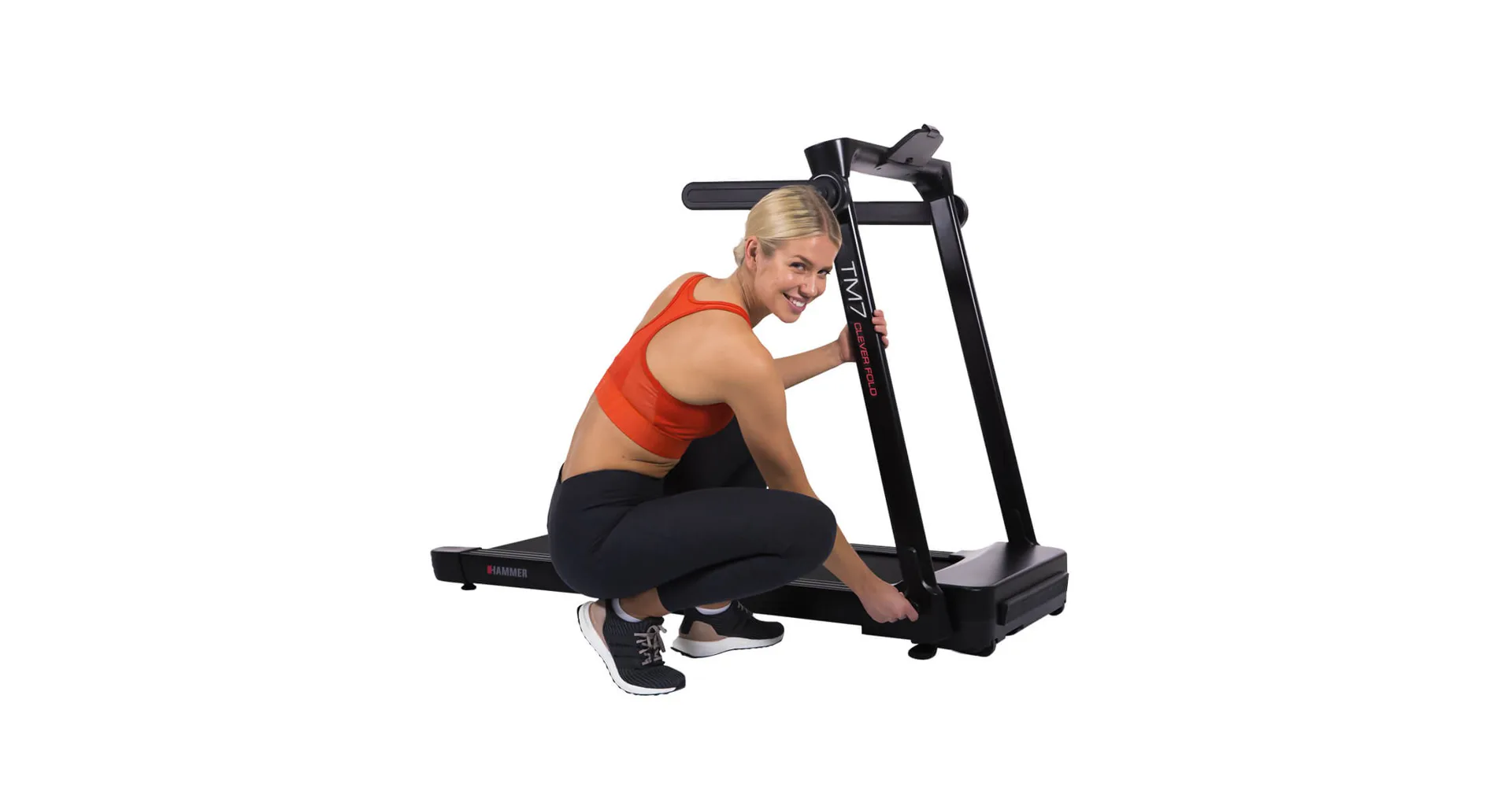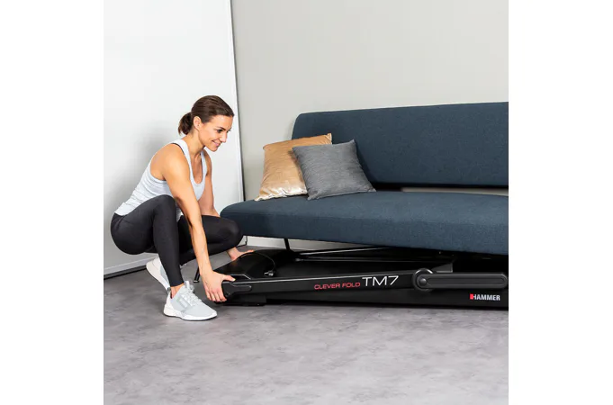 Pás HAMMER CleverFold TM7 je jedinečný tím, že ho po dokončení tréninku můžete zcela složit a zasunout třeba pod postel. Pás je nenáročný na prostor a navíc je dodáván zcela smontovaný.