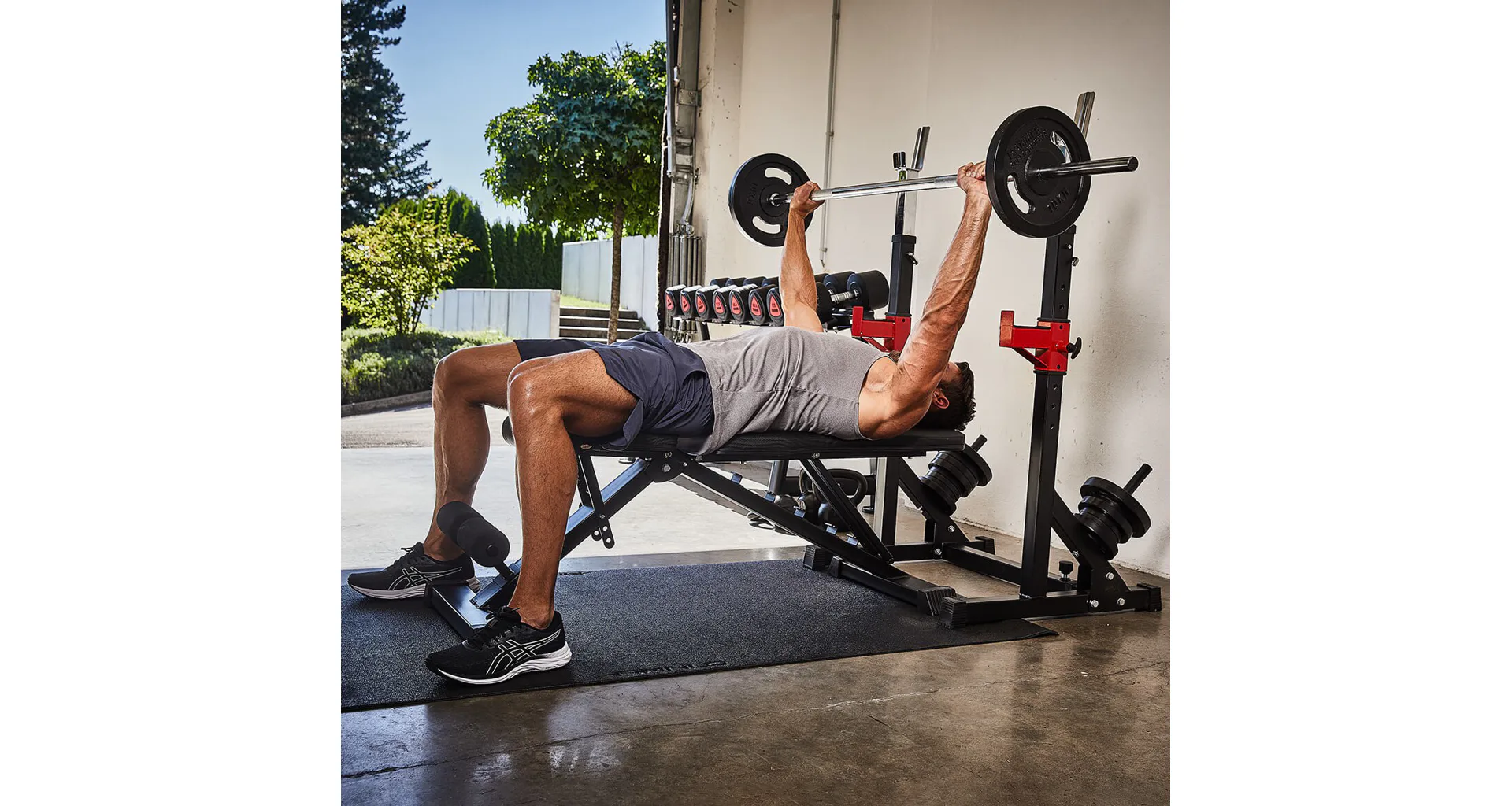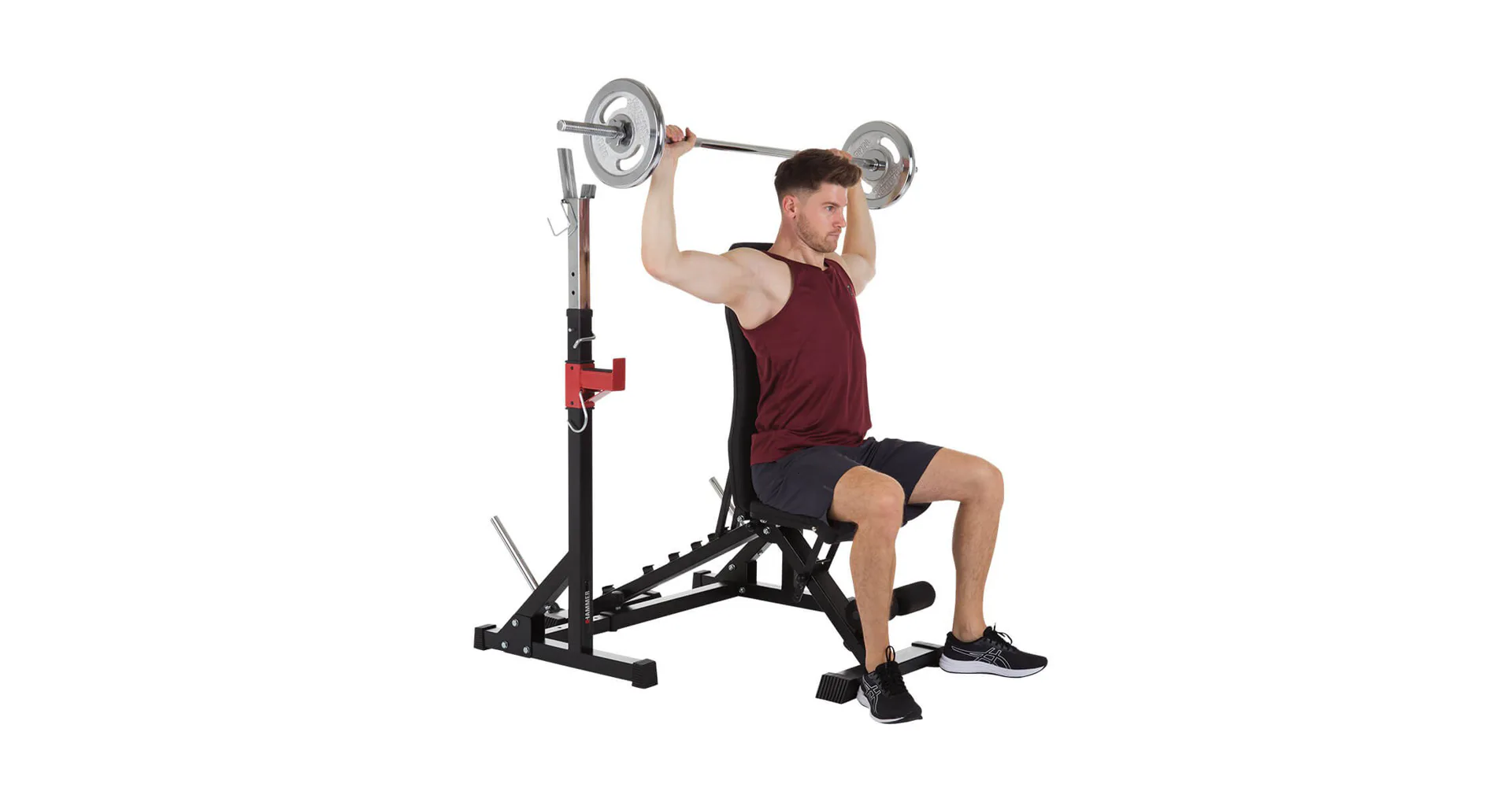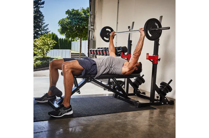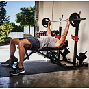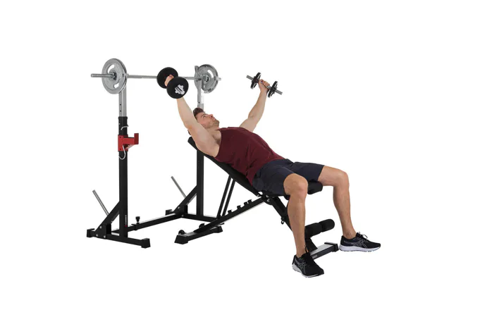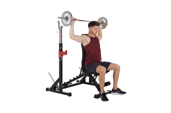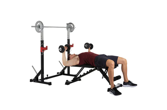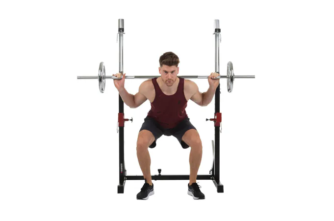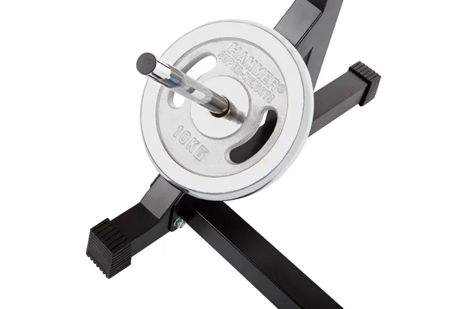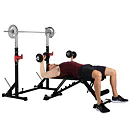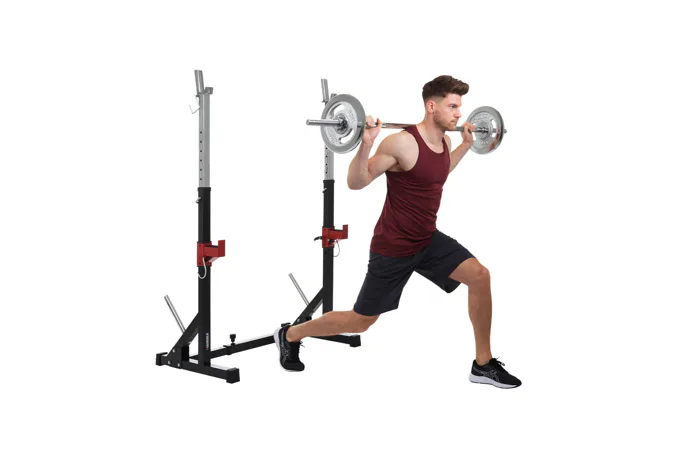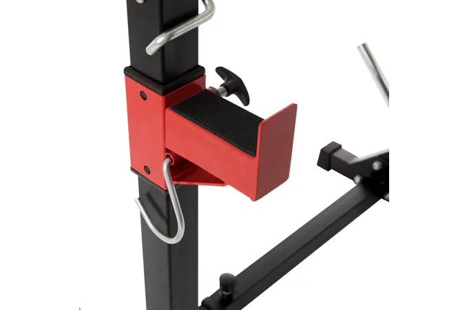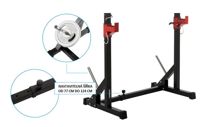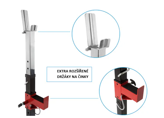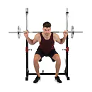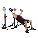 Díky své pevné struktuře a sofistikovanému designu je konstrukce naprosto stabilní, takže se můžete plně soustředit na trénink. Stojan na činku a bezpečnostní držáky na závaží udrží až 120 kg.