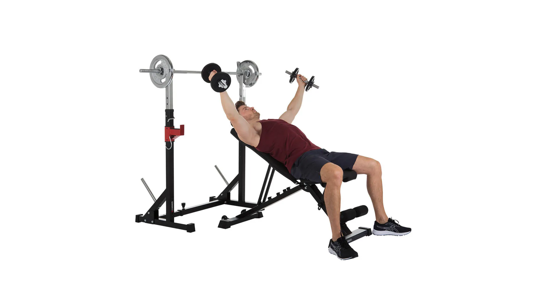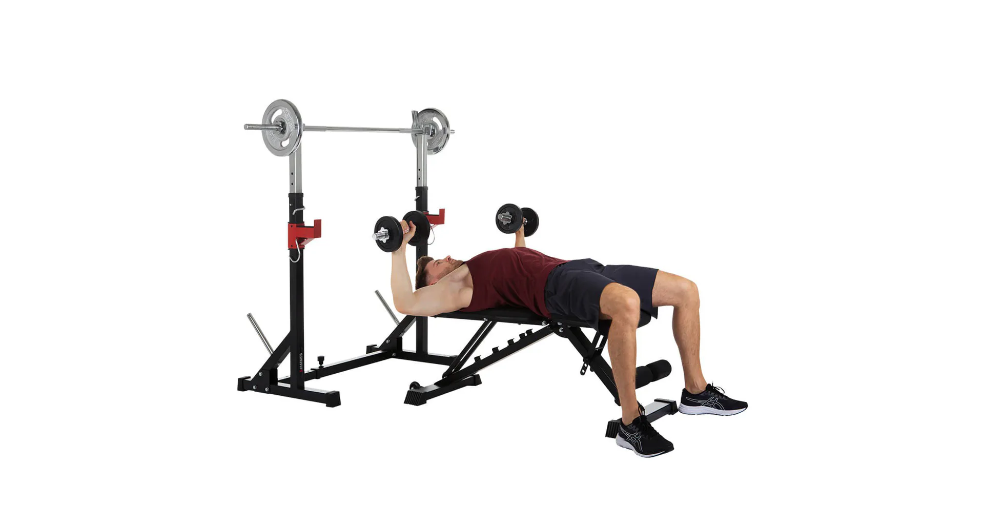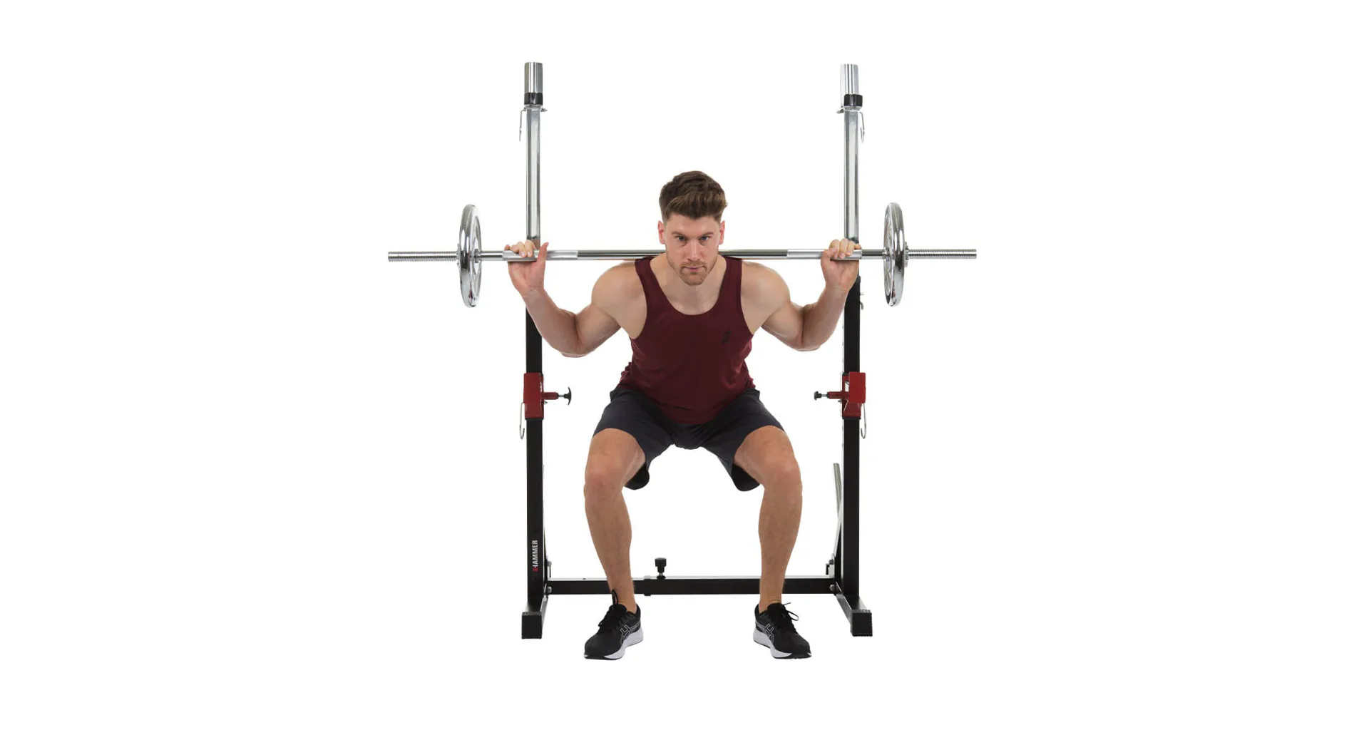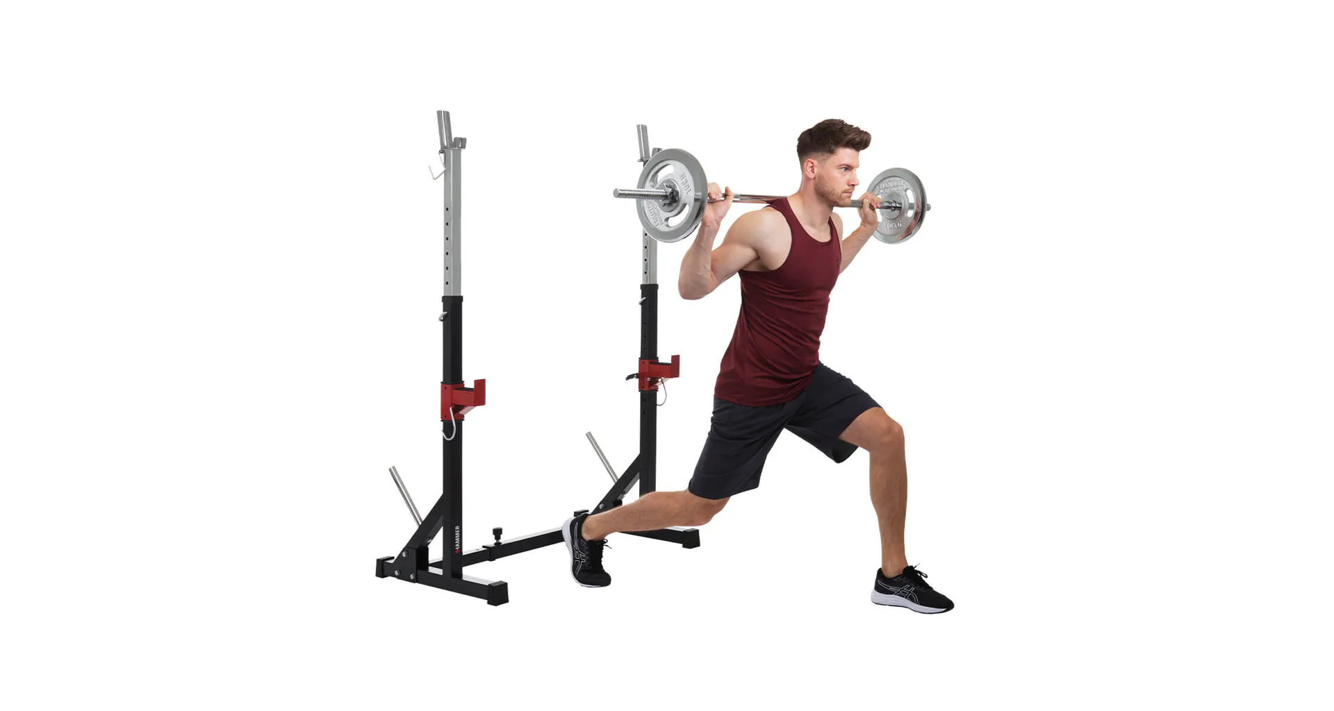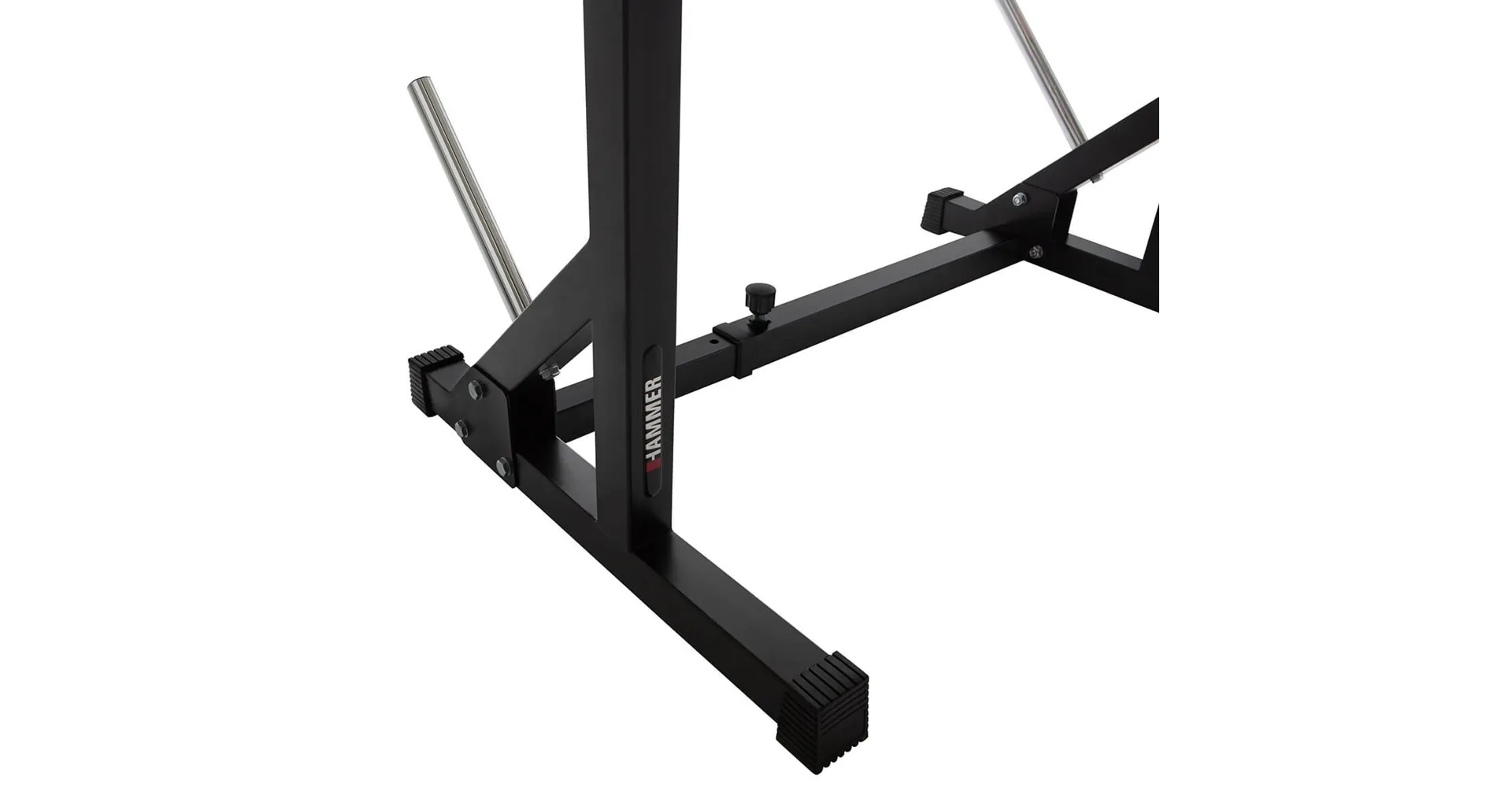 Stojan na činku HAMMER Core 2.0 je velmi oblíbený pro svou univerzálnost, široké možnosti využití a příznivou cenu. Díky spojené konstrukci s jedinečnou možností nastavení šířky i výšky je stojan použitelný na všechny typy činek a pro všechny postavy. Stojan lze používat samostatně nebo k posilovacím lavicím.