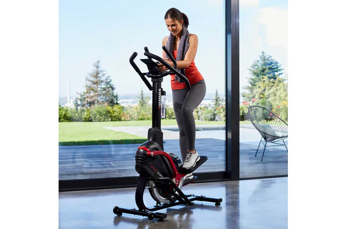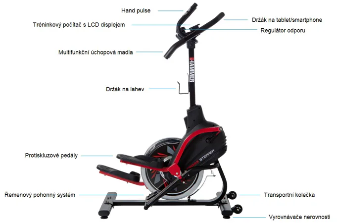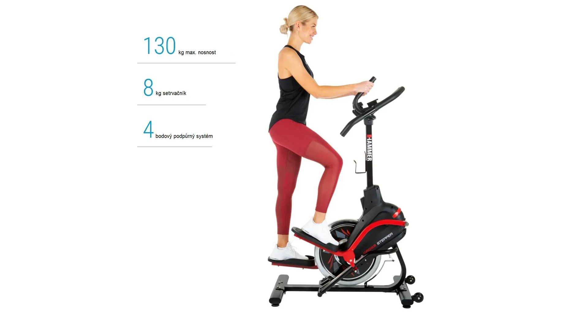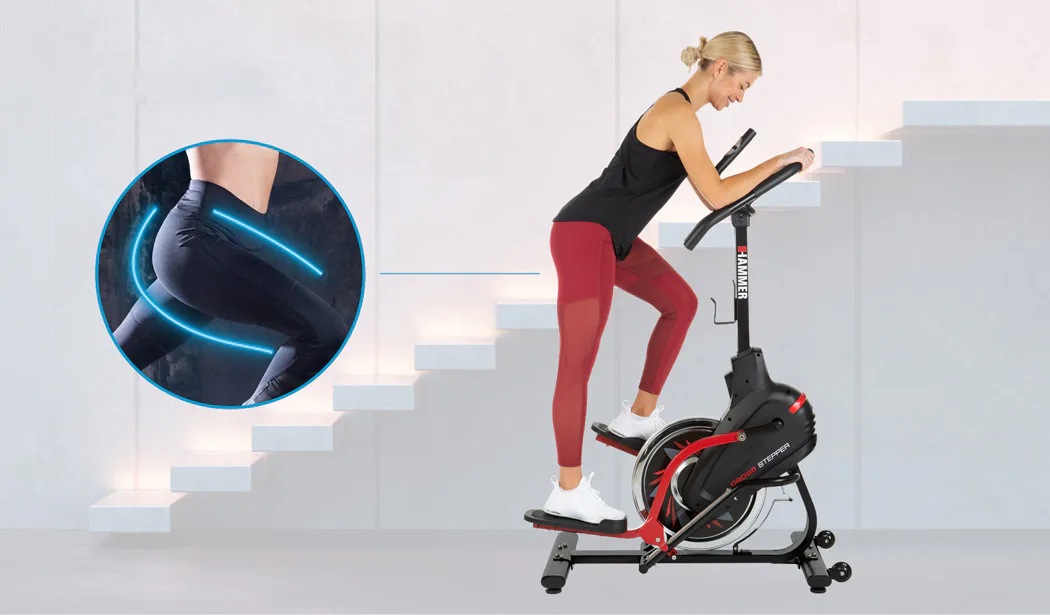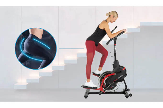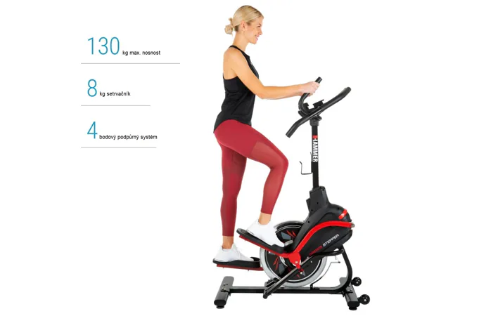 Hammer Cross Stepper je trenažér, který vám rychle a efektivně pomůže dosáhnout vaší vytoužené postavy. Pohyb nahoru-dolů, známý z klasických stepperů, zajišťuje silný a vysoce účinný trénink svalů hýždí. Mírný pohyb vpřed, který probíhá současně, podobně jako u běžného crossového trenažéru, zapojí svaly stehenní.