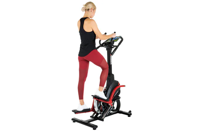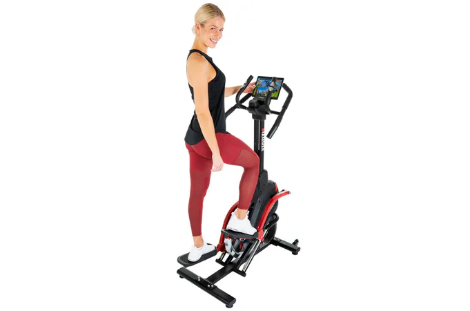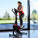 Cross Stepper nezabírá mnoho místa a je vhodný i do malých bytů. Zátěž si volíte ručně pomocí otočného regulátoru v 8 úrovních. Velké protiskluzové pedály zaručují bezpečný trénink a multi funkční řídítka nabízí různé polohy úchopu.