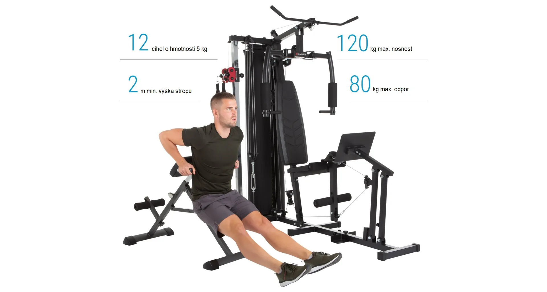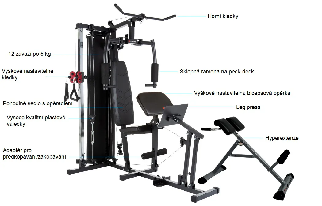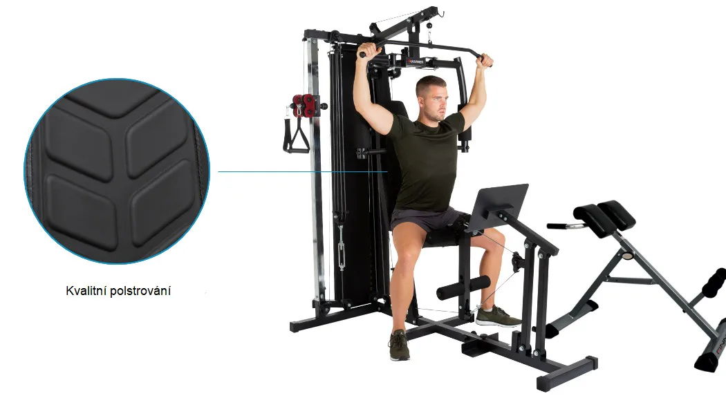 Posilovací věž Hammer Ferrum TX4 budete díky důmyslné konstrukci a doplňkům považovat za profesionální stroj a cvičení doma si skutečně užijete.