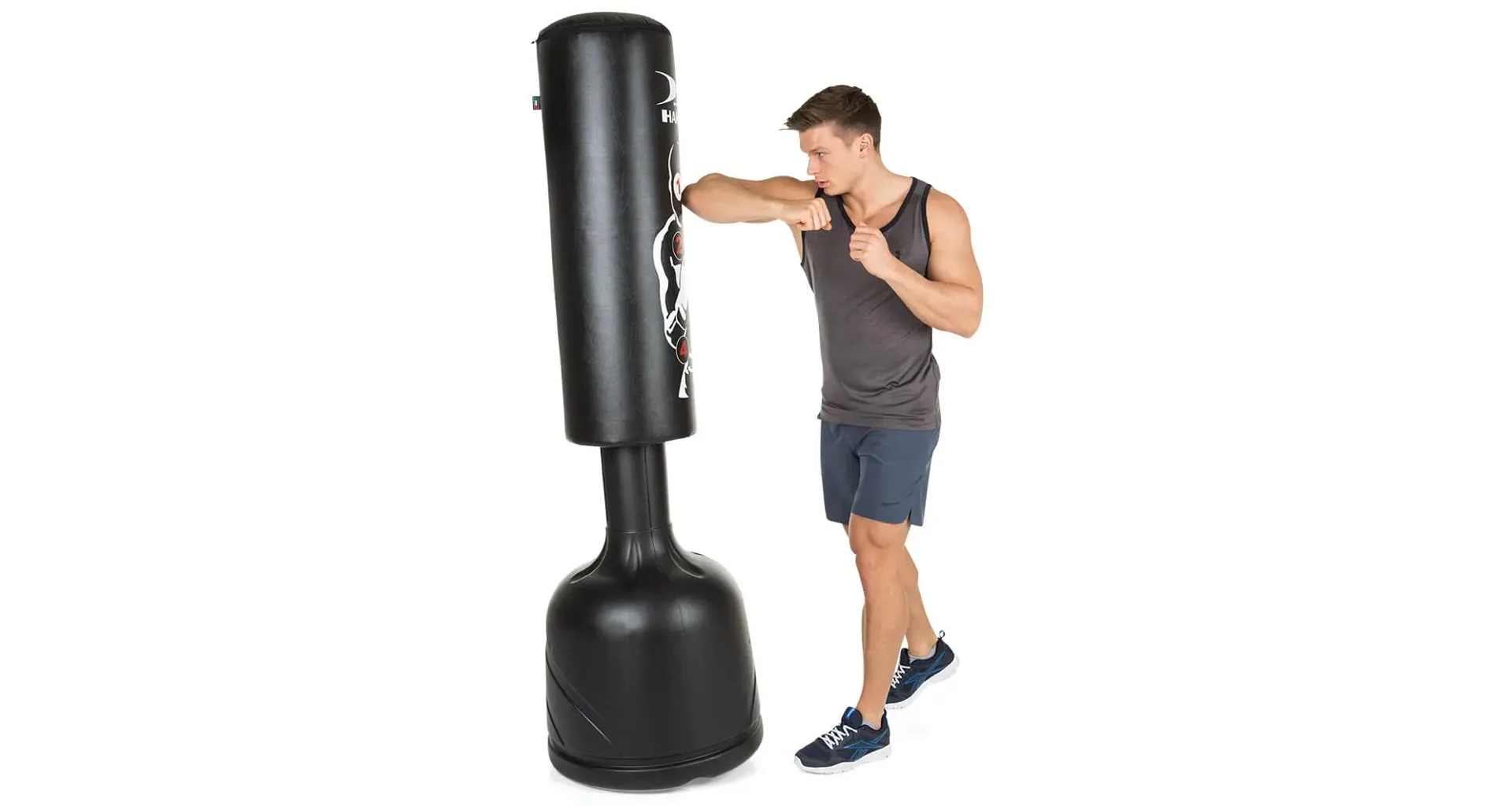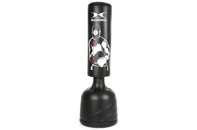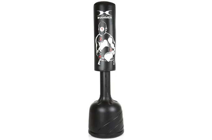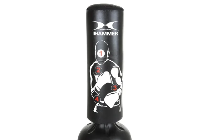 HAMMER Freestanding bag Sparring Pro je veľmi pevný a skladá sa z odolného PU materiálu nenáročného na údržbu. Vďaka veľkej úderovej ploche a terčom môžete trénovať každú kombináciu úderov. Či už chcete zlepšiť techniku, rýchlosť alebo presnosť HAMMER Freestanding bag Sparring Pro je pre vás ideálnym parťákom.