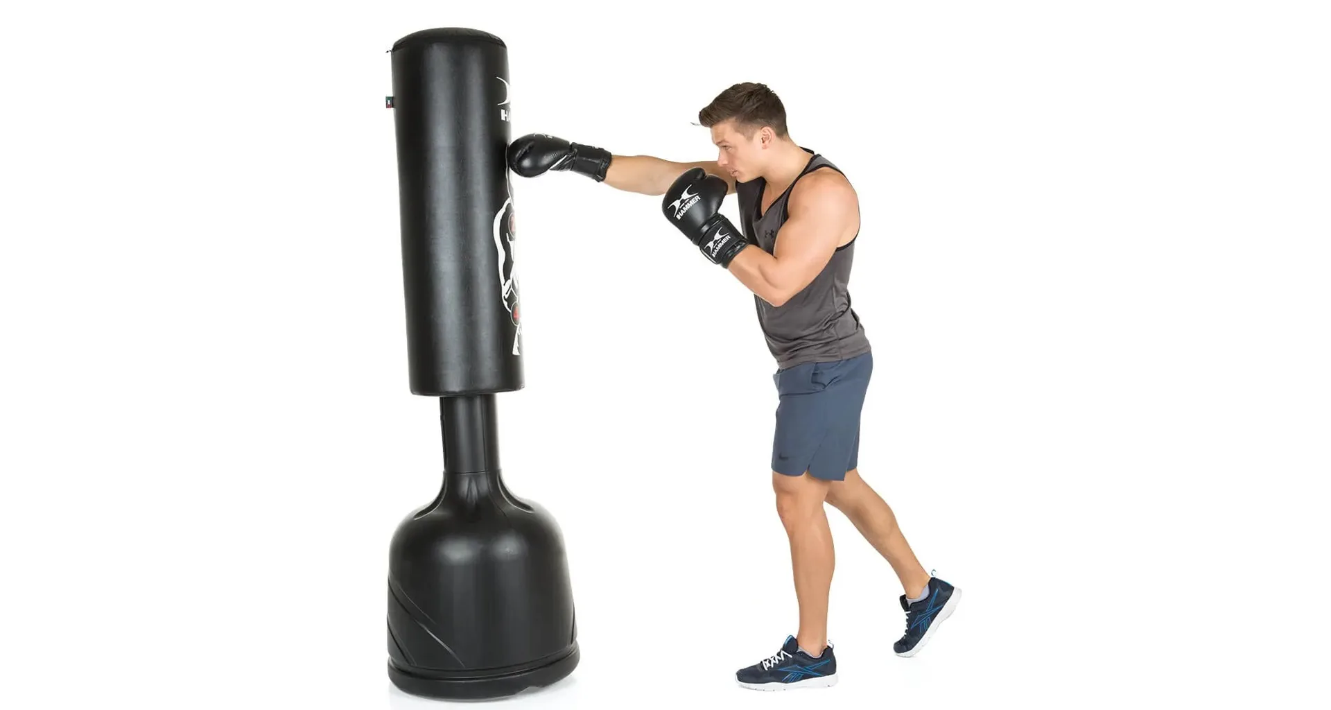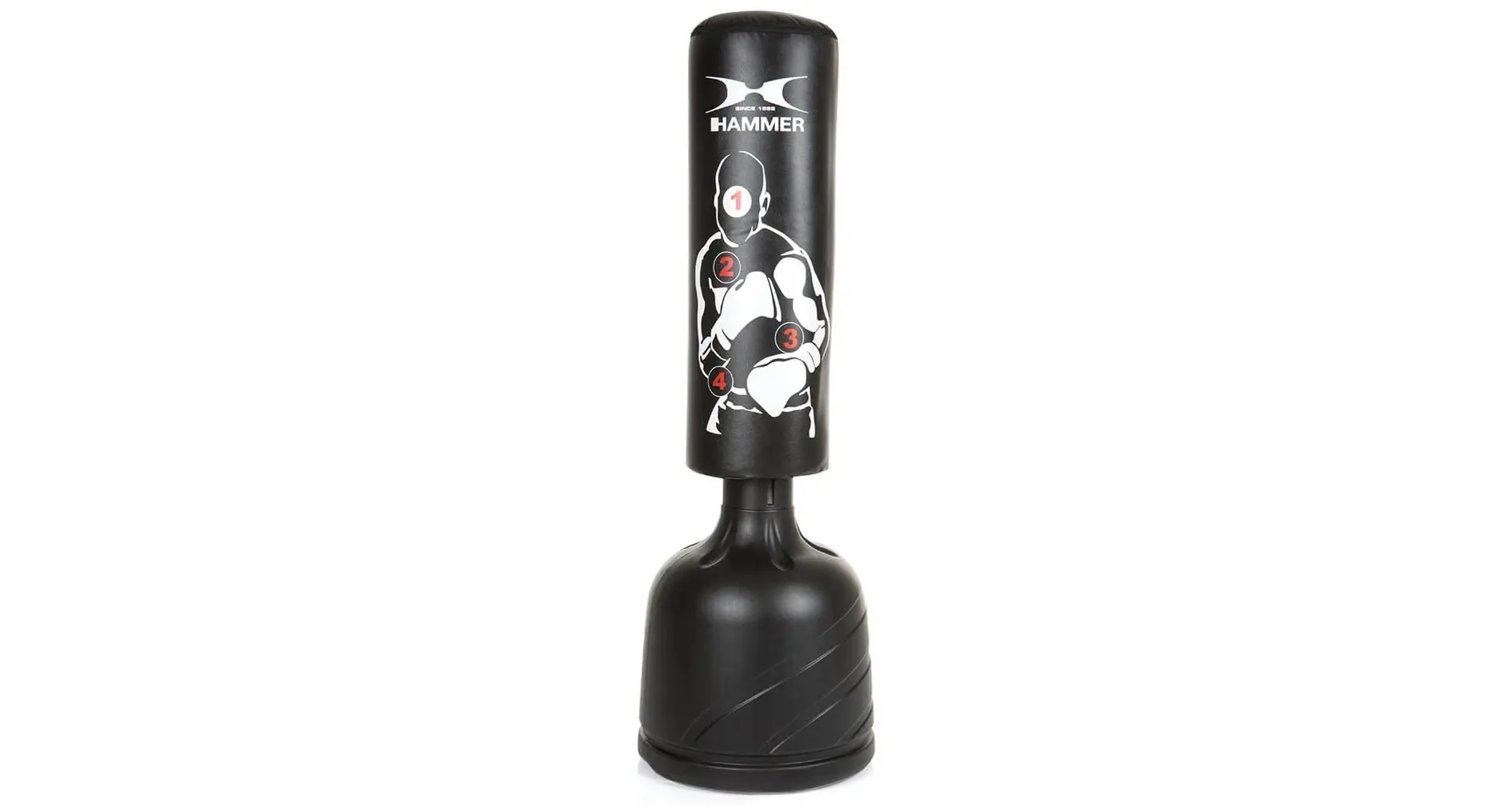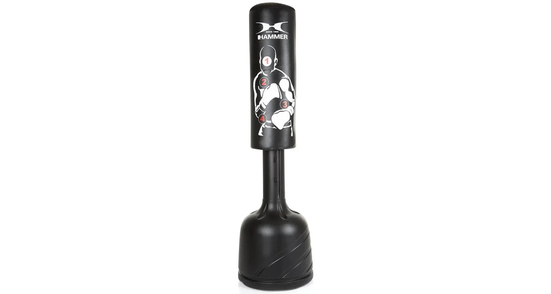 Či už vonku alebo vo vnútri, v kancelárii alebo v pivnici, stojace boxovacie vrece HAMMER Sparring Pro môžete postaviť kdekoľvek. Veľký stojan s priemerom 55 cm je možné naplniť vodou, pieskom alebo štrkom a nespadne ani pri najtvrdších úderoch. Sparring Pro si môžete nastaviť až do 4 úrovní výšky (160 cm, 175 cm, 190 cm a 205 cm), je tak vhodný pre fighterov menšieho aj väčšieho vzrastu.