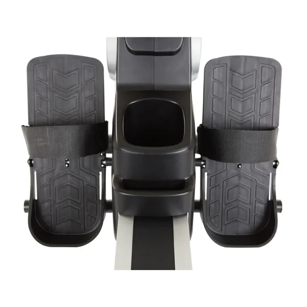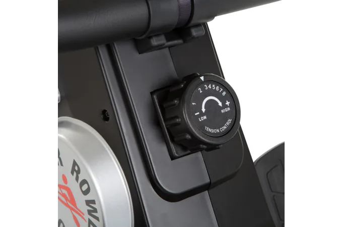 Magnetický brzdový systém zajišťuje plynulý chod, rovnoměrné tahy jsou srovnatelné s reálným veslování na vodě. Popruhy pro nohy jsou flexibilní. Nastavení magnetického odporu je manuálně v 8 úrovních.