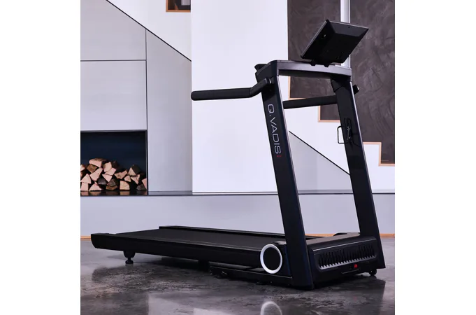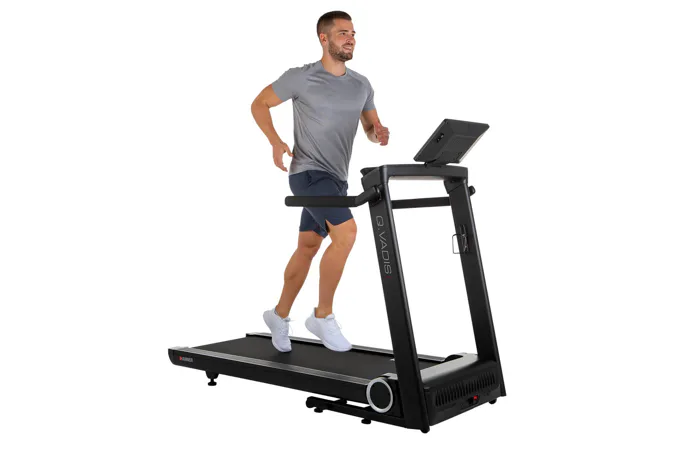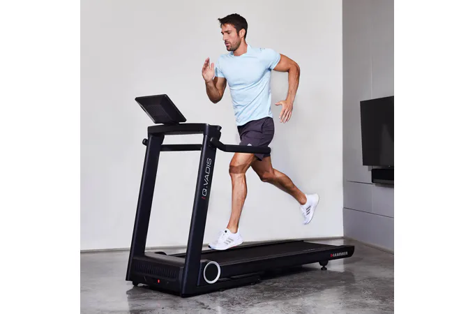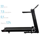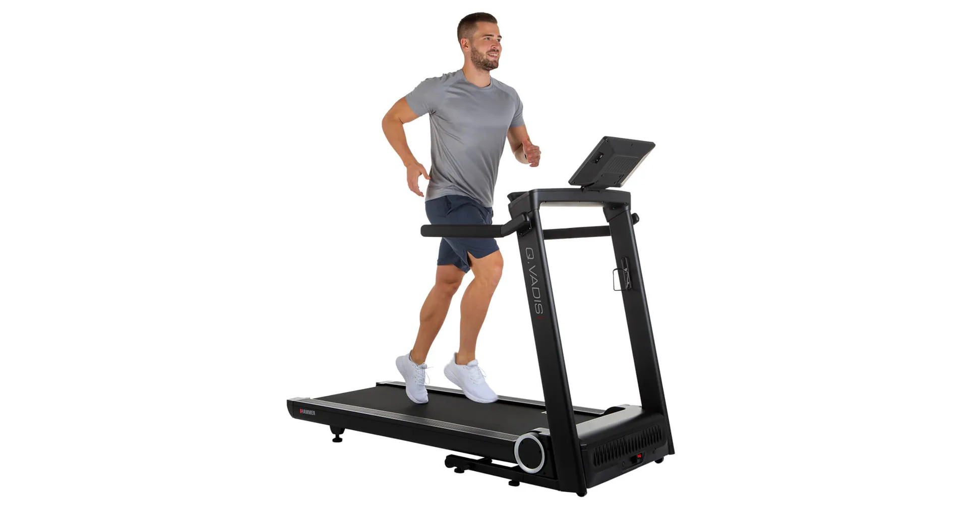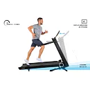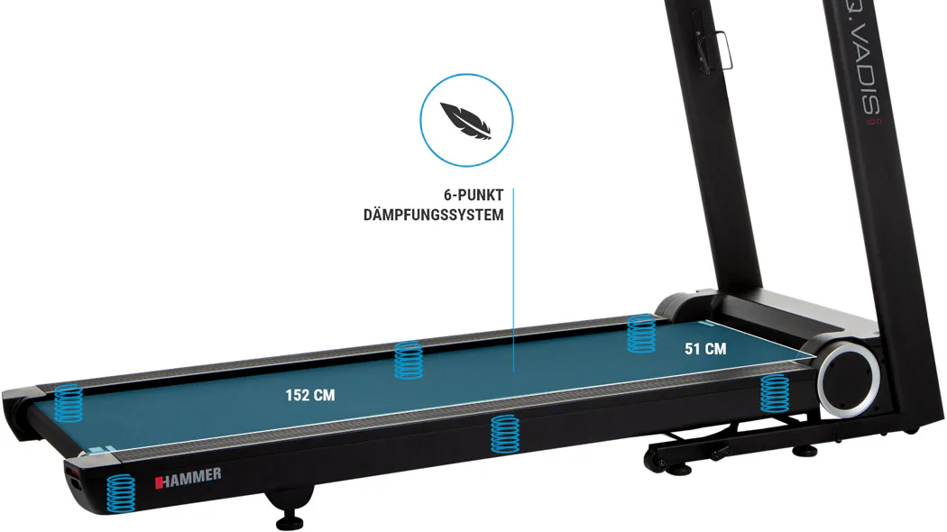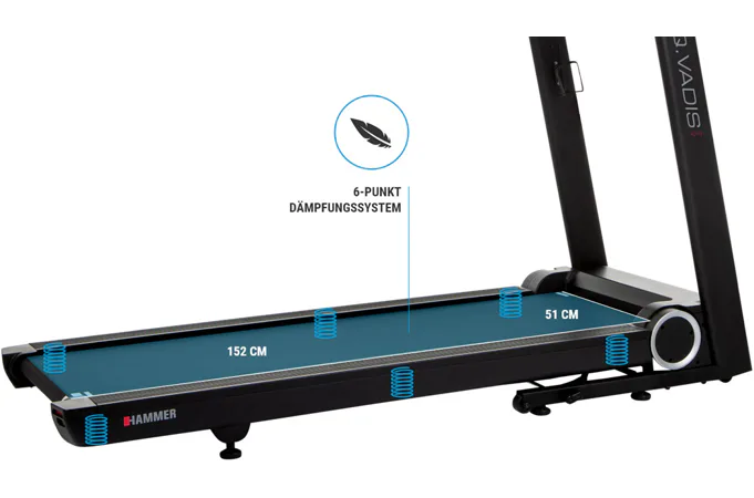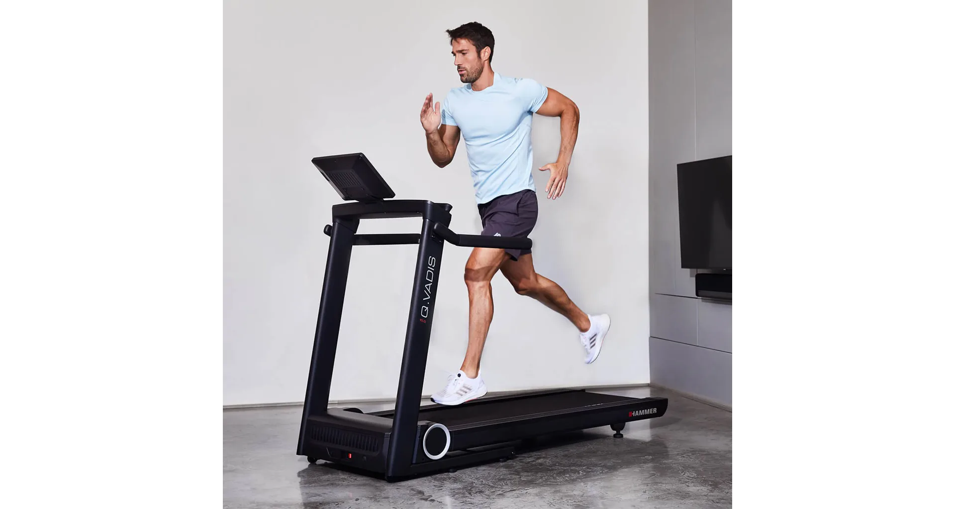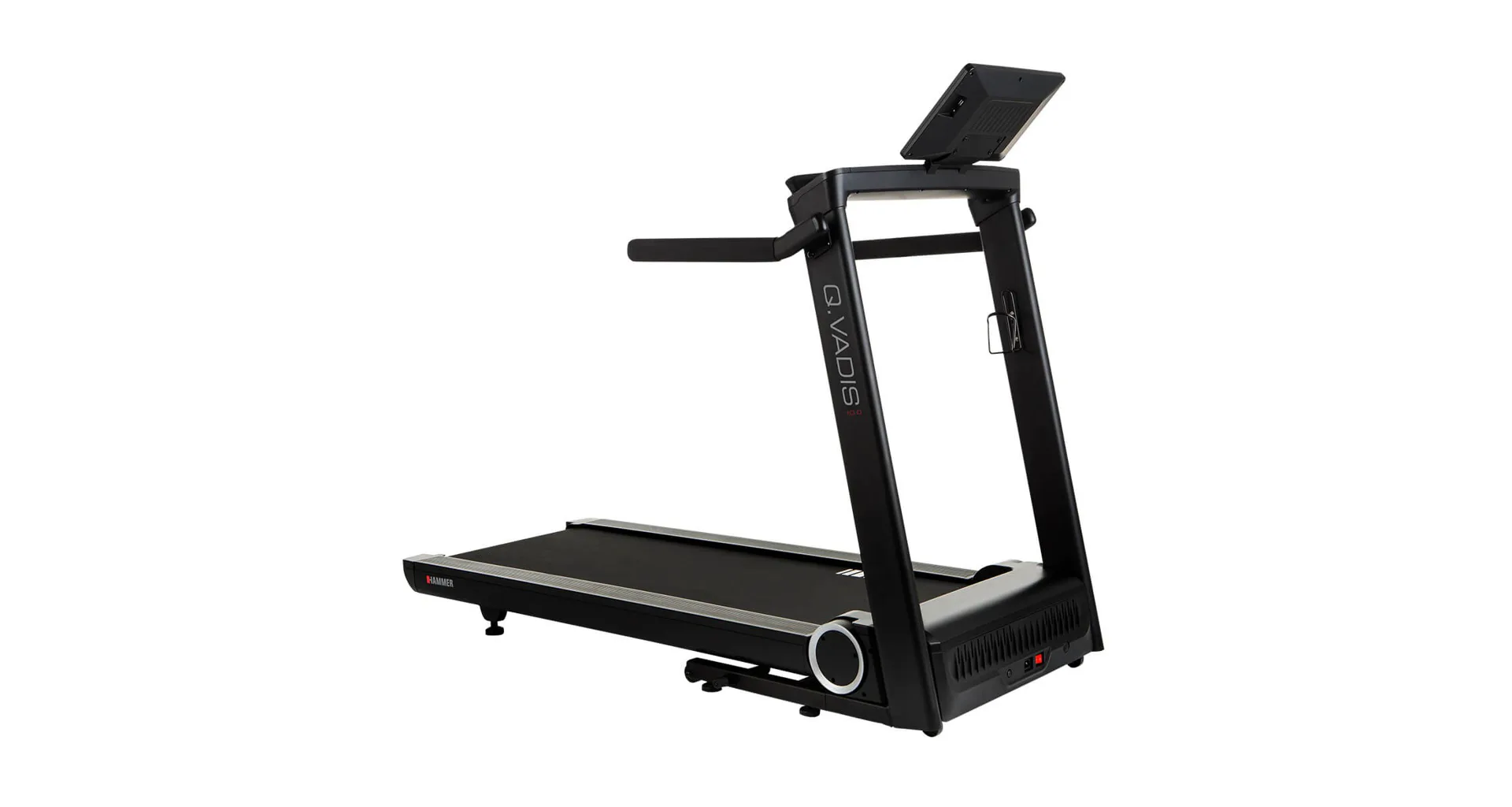 Bežecký pás HAMMER Q.Vadis 10.0 vám ľahko pomôže spáliť tuky a zlepšiť fyzickú kondíciu. Trenažér disponuje priestrannou bežeckou plochou s rozmermi 51 x 152 cm s nosnosťou do 150kg. Kvalitný a odolný motor s trvalým výkonom 3,0 HP (max. výkon 7,5 HP) zaistí tichý chod aj pri maximálnom zaťažení. Rýchlosť je možné regulovať v rozsahu 0,8 - 22 km/h sklon bežeckej plochy je nastaviteľný do 12 %. Pre nastavenie rýchlosti a sklonu sú madlá stroja opatrené "rýchlymi tlačidlami". Vďaka jedinečnej štruktúre Q.Vadis 10 sa celá konštrukcia pri nastavení sklonu pohybuje nahor a displej sa tak automaticky prispôsobí ľubovoľnému požadovanému uhlu sklonu.