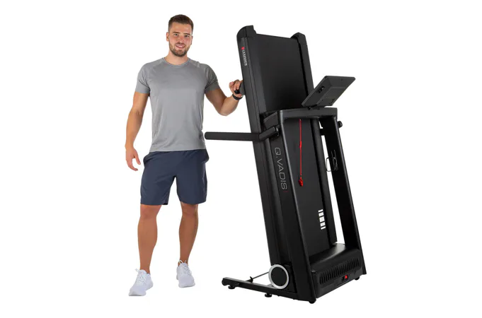 Pre úsporu miesta je možné bežeckú plochu ľahko sklopiť a vďaka transportným kolieskam sa dá stroj ľahko manipulovať. Zložený stroj má rozmery: 74 x 83 x 170 cm.