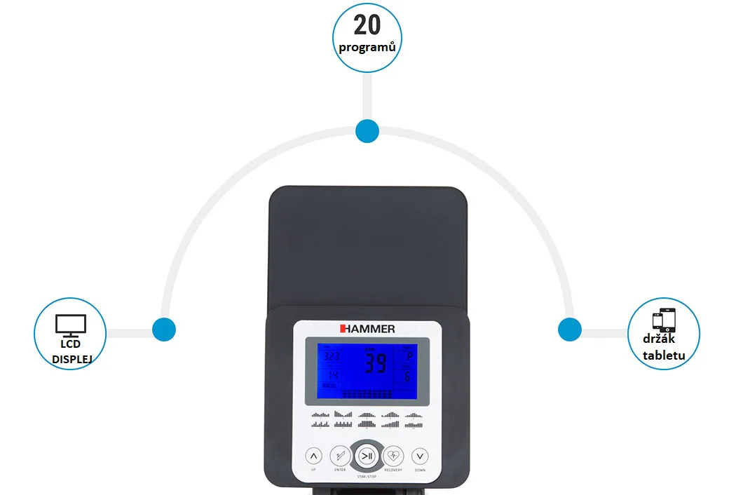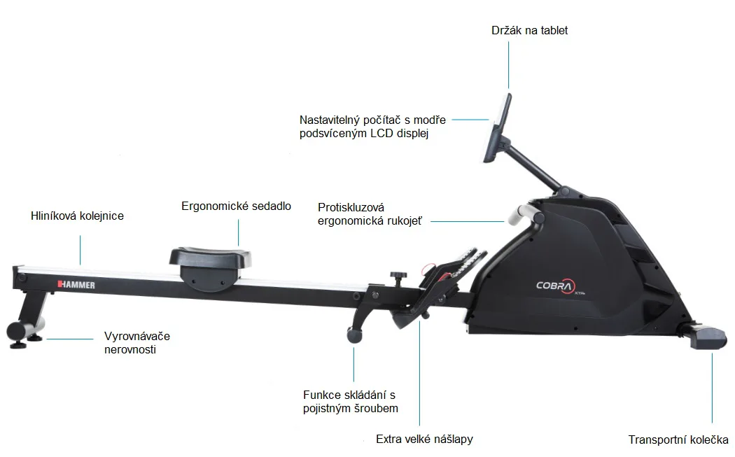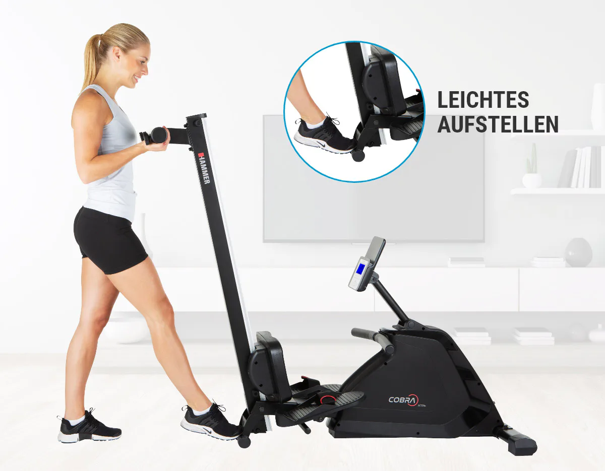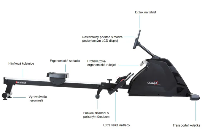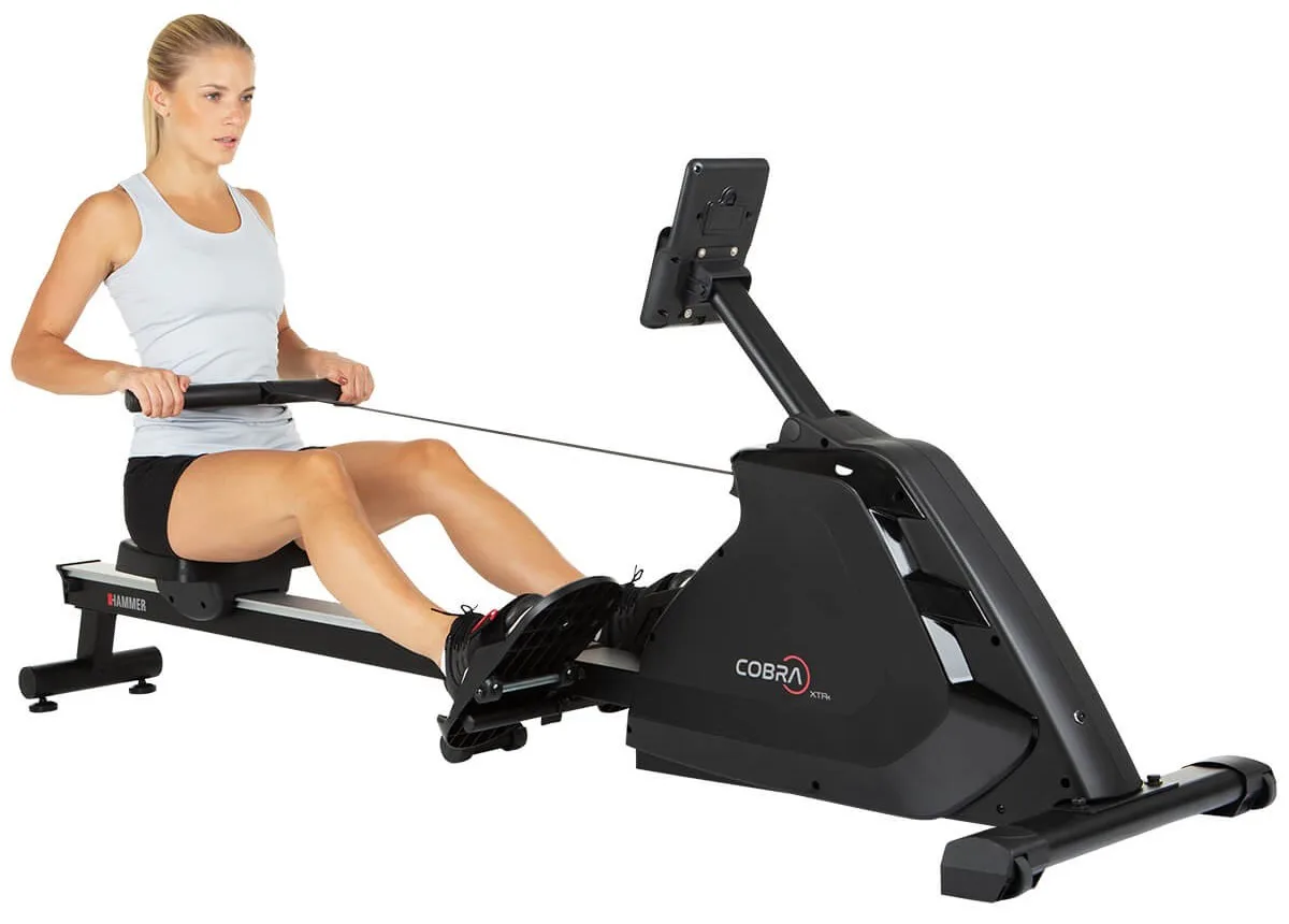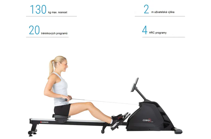 Hammer Rower Cobra XTR Plus II je skvělý veslovací trenažér pro domácí trénování s velmi odolnou rámovou konstrukcí, kvalitními komponenty a moderní elektronikou. Je navržen tak, aby vyhovoval osobám do výšky 200 cm.