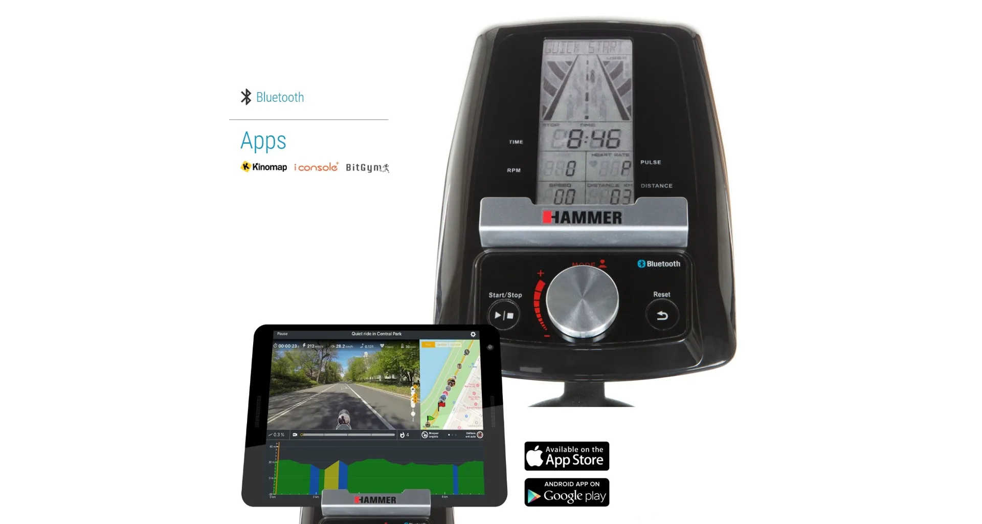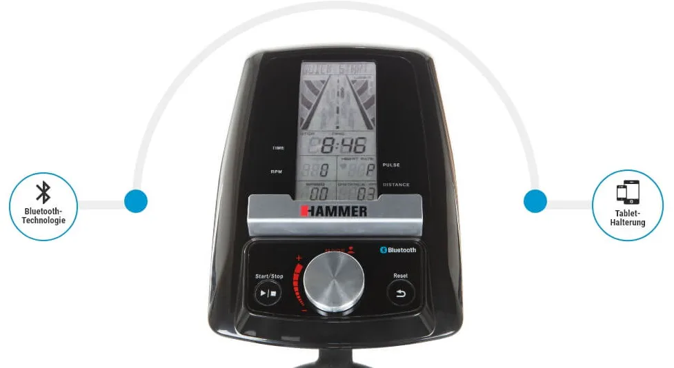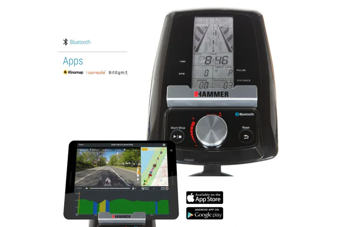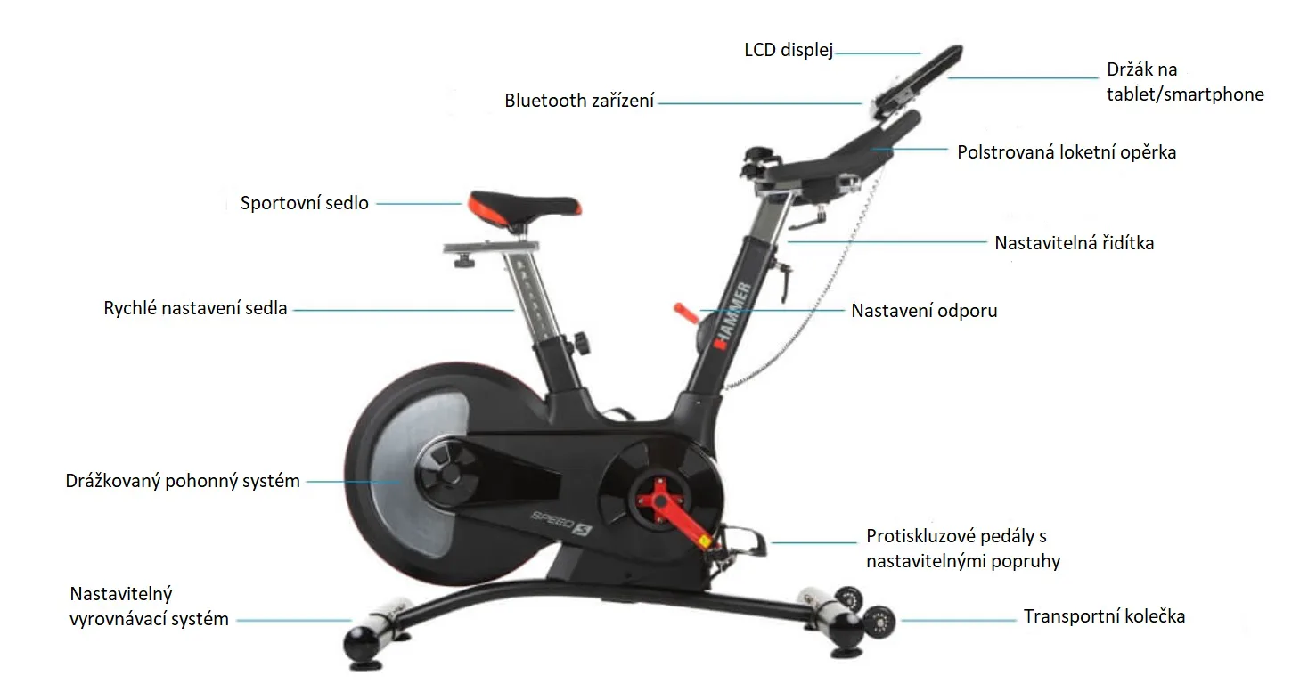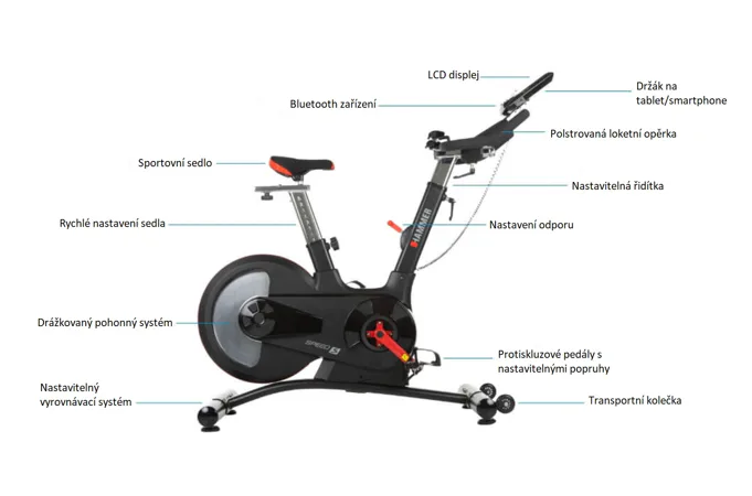 Trenažér je vybaven počítačem s držákem na tablet/smartphonem, bluetooth zařízením. Nedílnou součástí jsou i transportní kolečka a vyrovnávače nerovnosti.