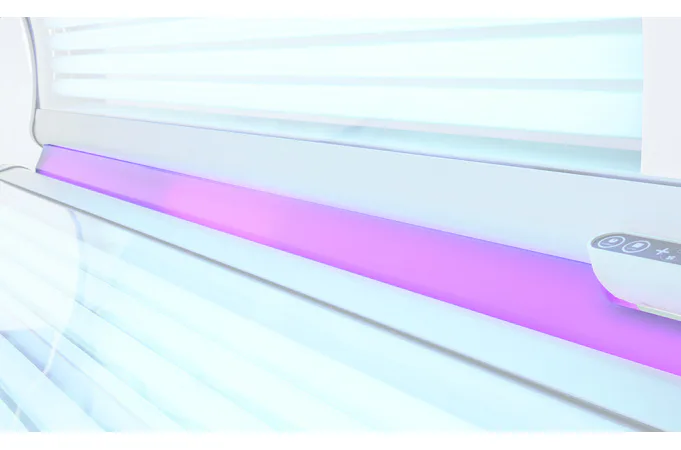 HAPRO Connecting Shield Plus vďaka ambientnému osvetleniu vytvára relaxačnú atmosféru počas opaľovania, ktorú ešte podčiarkne Soundbox, ktorý umožňuje prehrávať hudbu.