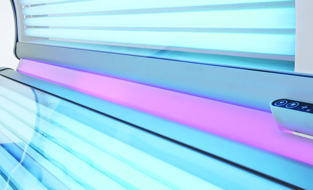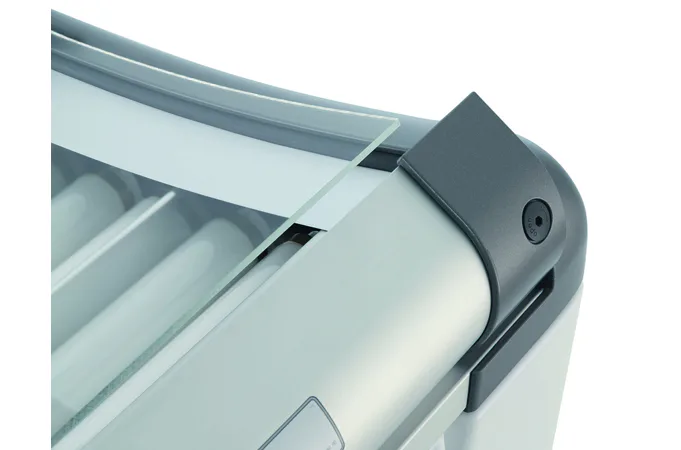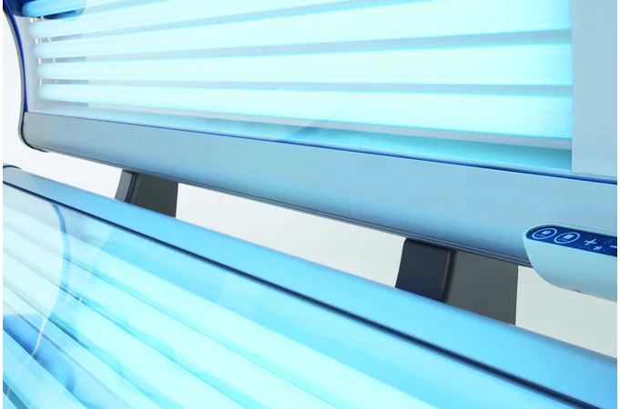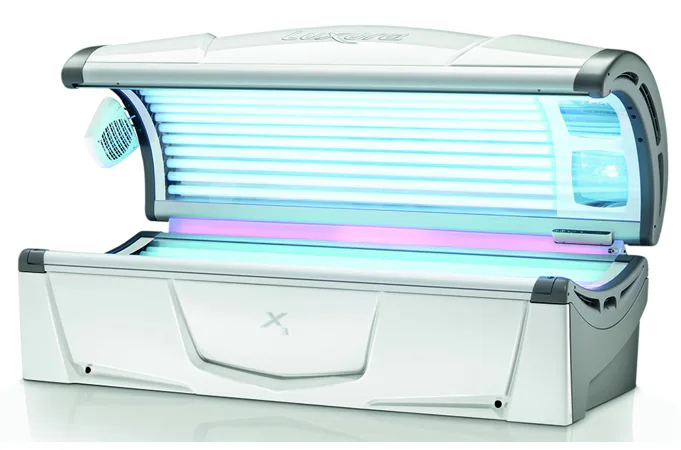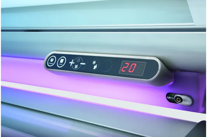 Solárium disponuje 18 lampami o výkonu 100 W na víku, 14 XL lampami o výkonu 120 W ve spodní části a ve víku jsou navíc 3 vysokotlaké speciální žárovky na obličej s výkonem 400 W.
