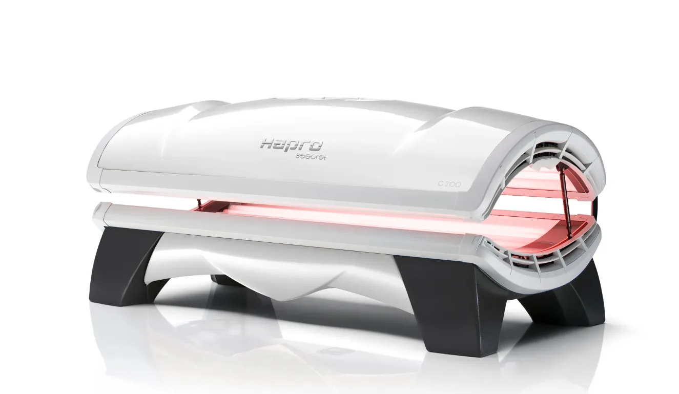 Hapro Seecret C200 je kolagenárium vyžarujúce ružové svetlo, ktoré aktivuje tvorbu kolagénu a tým prispieva k výraznému omladeniu pleti. Viditeľné zmeny pokožky môžete pozorovať po ucelenej kúre asi 10 návštev. Seecret C200 je vhodné pre solárne štúdiá, menšie komerčné priestory, kúpele či wellness.