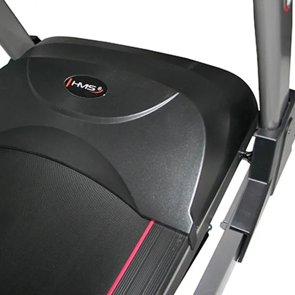 Bežecký pás HMS BE 8535 je moderný, robustný bežecký trenažér s možnosťou ľahkého zloženia a snímačmi tepovej frekvencie v rukovätiach. Tichý motor s výkonom 3,5 HP zaručí maximálnu rýchlosť 22 km/h. Odpružená bežecká plocha s možnosťou elektronického zdvihu pásu, ponúka dostatok komfortu pre každodenný tréning. Všetky potrebné informácie vám prehľadne zobrazí podsvietený LED displej, pod ktorý si vďaka praktickej opierke môžete umiestniť napríklad tablet. Výhodou sú zabudované kolieska pre ľahký presun pásu na požadované miesto. Vďaka týmto vlastnostiam je bežecký pás HMS BE 8535 vhodným doplnením každej domácej posilňovne.