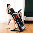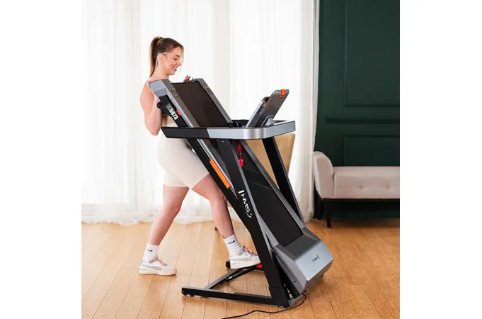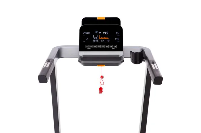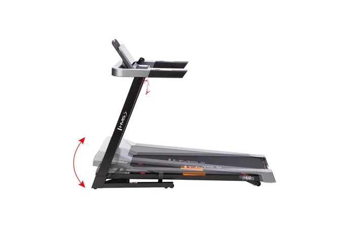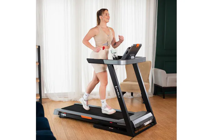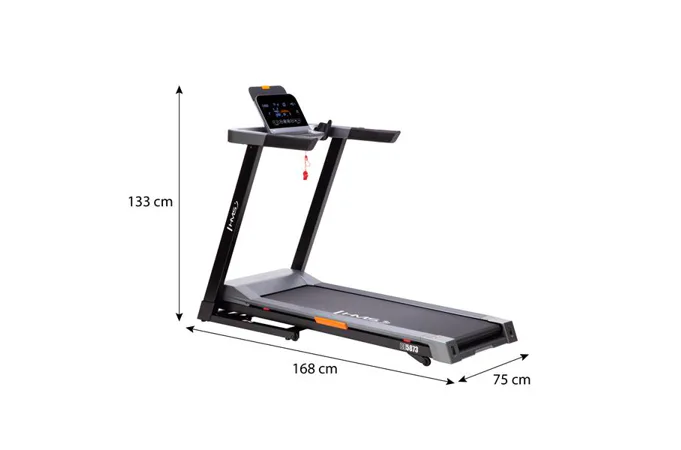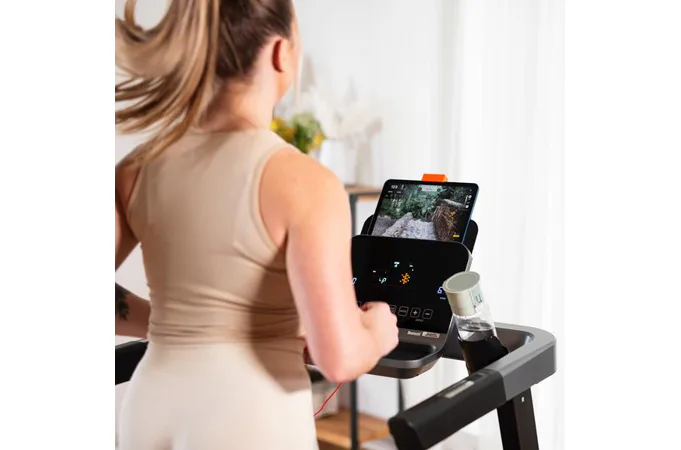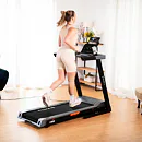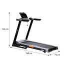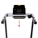 Ovládanie rýchlosti a sklonu na rukovätiach umožňuje rýchlo a pohodlne upravovať parametre cvičenia bez prerušenia cvičenia. Bežecký pás ponúka priestrannú bežeckú plochu s rozmermi 130 x 45 cm a systém odpruženia, ktorý sa skladá zo 6 vnútorných a 6 vonkajších silentblokov. Vďaka tomu prístroj účinne znižuje zaťaženie kĺbov a zaisťuje pohodlie aj pri intenzívnom tréningu.