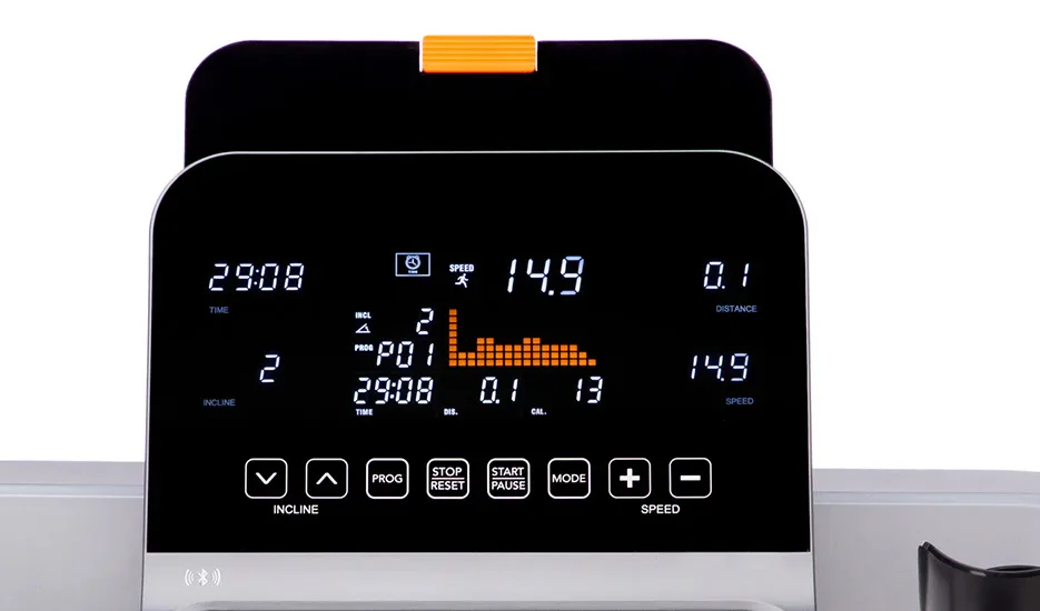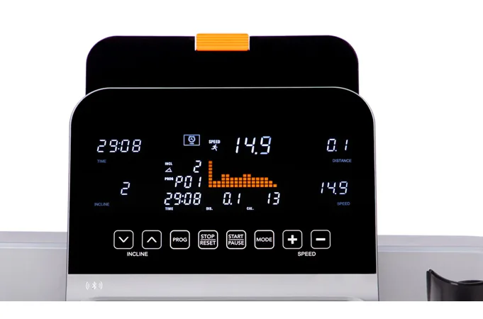 Bežecký pás BE5873 je vybavený počítačom s LCD displejom, ktorý ponúka až 36 nadefinovaných tréningových programov, 3 užívateľské programy a 1 manuálny program. Vstavané snímače na meranie času, vzdialenosti, rýchlosti, kalórií, pulzu a funkcie analýzy telesného tuku vám pomôžu sledovať vaše pokroky a prispôsobiť intenzitu cvičenia vašim individuálnym potrebám.