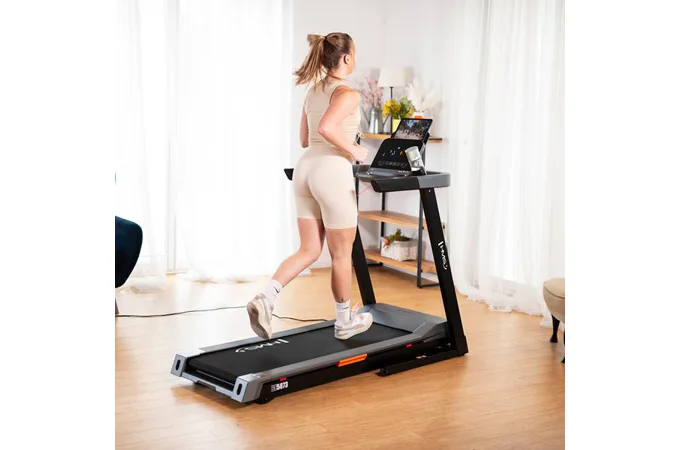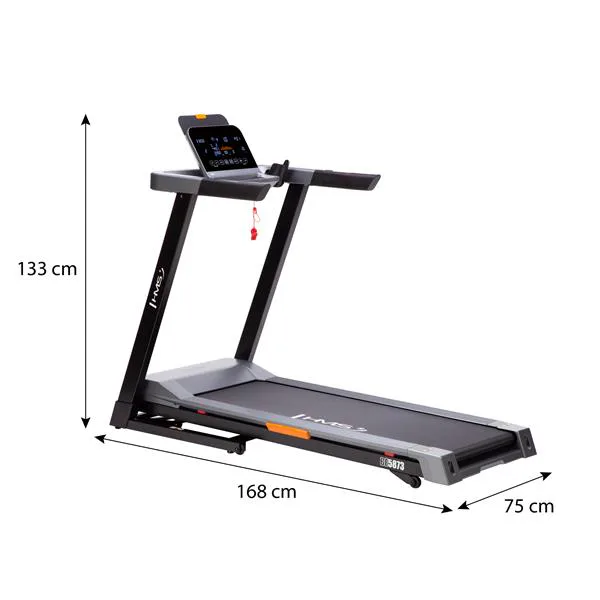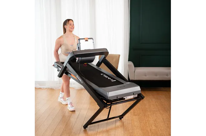 Skladacia konštrukcia umožňuje bežecký pás po tréningu zdvihnúť pre úsporu priestoru a transportné kolieska uľahčujú jeho premiestňovanie. Bežecký pás BE5873 je vybavený technológiou Bluetooth, ktorá umožňuje pripojenie k tréningovým aplikáciám, ako sú Kinomap, Zwift a AnyRun.