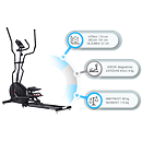 Nášľapy sú opatrené protišmykovou gumou pre pohodlné cvičenie. Príjemnou drobnosťou je možnosť zdvihnutia lyžín na úsporu miesta, keď trenažér nie je používaný. Veľký LCD displej počítača prehľadne zobrazuje všetky dôležité informácie počas tréningu.
