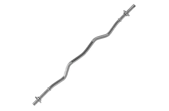 Hriadeľ mierne zlomený - 120 cm, matica v tvare hviezdy. Na zaistenie pohodlného a bezpečného uchopenia, je rukoväť hriadeľa vrúbkovaná. Súprava obsahuje dve skrutkové matice. Matice tohto typu zaručujú pri cvičení stabilnú polohu. Matice majú vo vnútrajšku gumové tesnenie, aby sa zabránilo uvoľneniu zaťaženia. Hriadeľ je vyrobený z pevnej ocele, ktorá bola podrobená temperovaniu. Priemer hrdla je 30 mm.