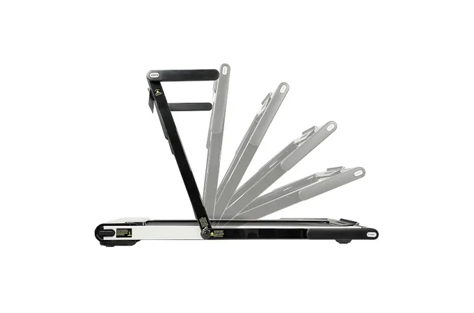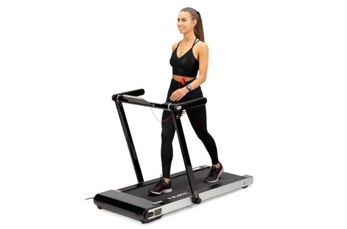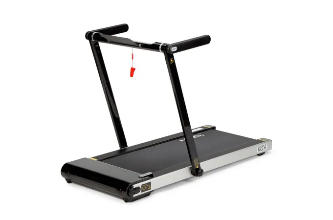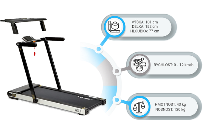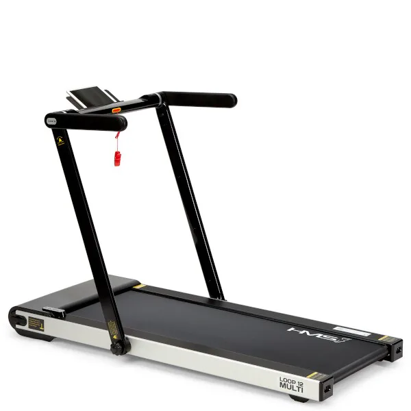Bez nasadeného pultu sa z trenažéra HMS LOOP12 stáva plnohodnotný bežecký pás s maximálnou rýchlosťou 12 km/h a výkonom 2,5 HP. Bežecká plocha s rozmermi 125 x 45 cm je na 6 miestach odpružená pomocou silikón-gelových silentblokov, ktoré znižujú zaťažovanie kĺbov pri behu. Konzola sa dá ľahko sklopiť k zadnej hrane trenažéra a po sklopení získame rozmer 158 x 77 x 14 cm a trenažér sa tak zmestí za skriňu, alebo pod posteľ. Presúvanie modelu HMS LOOP12 navyše uľahčujú 2 páry koliesok. Prvý pár sa nachádza na spodnej hrane a po zdvihnutí zadnej časti pásu umožňujú pohyb vpred a vzad. Druhý pár koliesok sa nachádza na čele trenažéra a po jeho zdvihnutí do kolmej pozície umožňujú pohyb do strán.