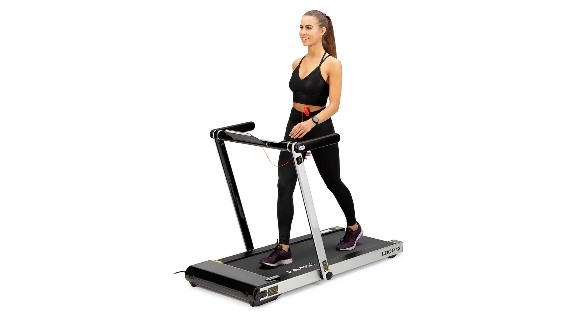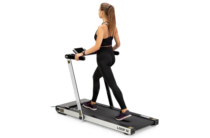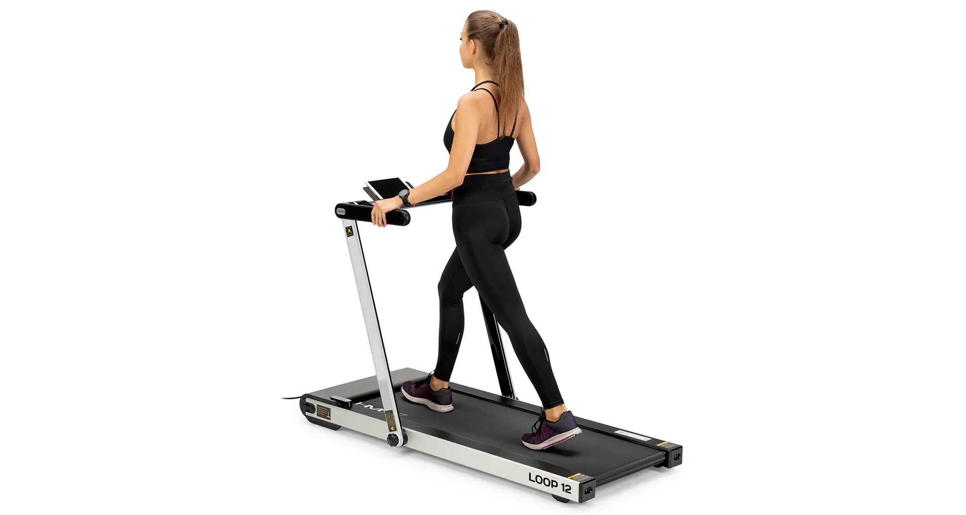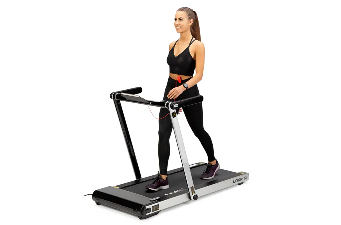 Maximálna rýchlosť trenažéra je 12 km/h, motor má špičkový výkon 2,5 HP. Bežecká plocha s rozmermi 125 x 45 cm je na 6 miestach odpružená pomocou silikóngelových silentblokov, ktoré znižujú zaťažovanie kĺbov pri behu. Konzola sa dá ľahko sklopiť k zadnej hrane trenažéra a po sklopení získame rozmer 158 x 77 x 14 cm a trenažér sa tak zmestí za skriňu, alebo pod posteľ. Presúvanie modelu LOOP12 navyše uľahčujú 2 páry koliesok. Prvý pár sa nachádza na spodnej hrane a po zdvihnutí zadnej časti pásu umožňujú pohyb vpred a vzad. Druhý pár koliesok sa nachádza na čele trenažéra a po jeho zdvihnutí do zvislej polohy umožňujú pohyb do strán.