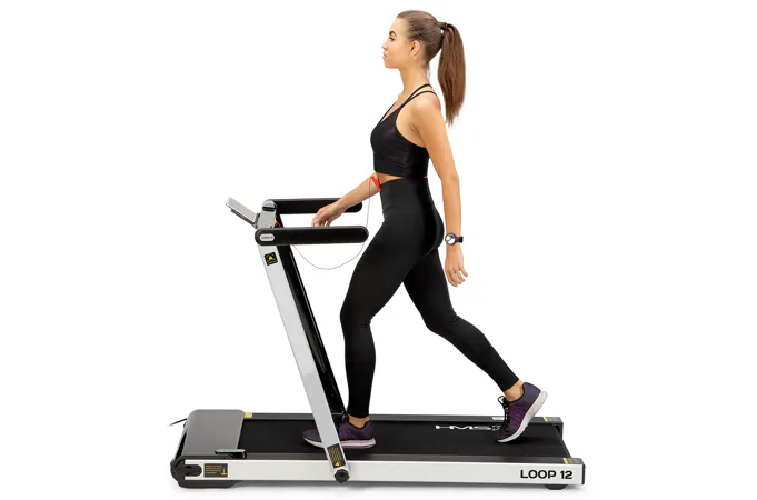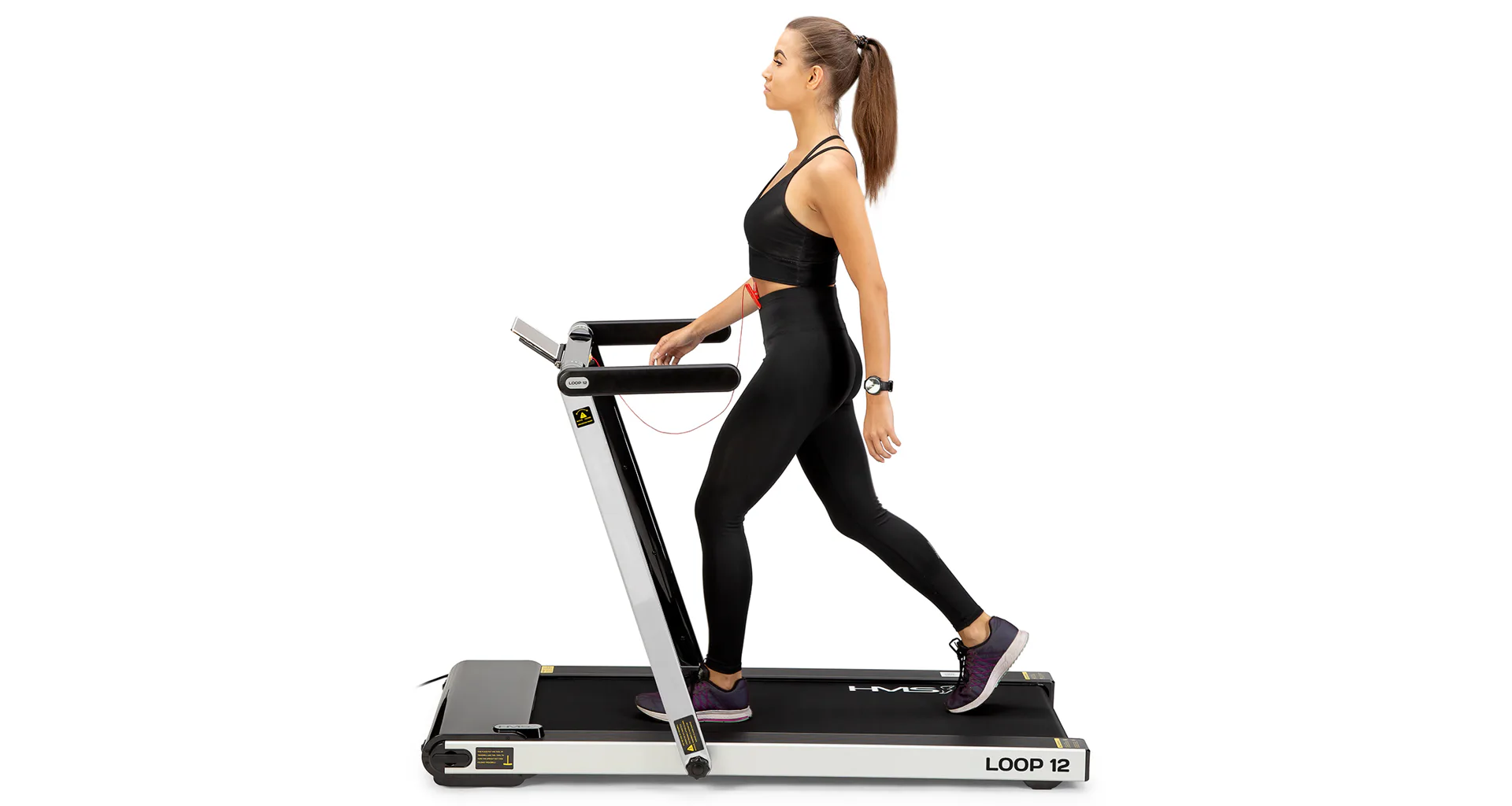 Bežecký pás HMS LOOP12 má moderný dizajn a po zložení zaberá veľmi málo miesta.