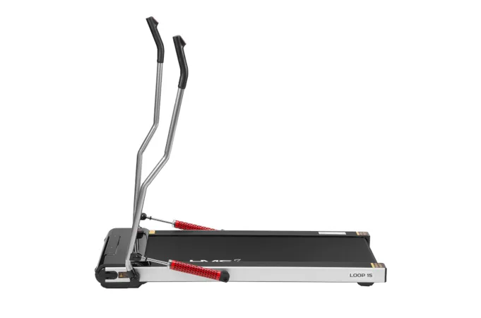 Pri navrhovaní trenažéra sme sa snažili o čo najužšiu konštrukciu. Výsledkom je rozmer (so sklopenými rukoväťami) 147 x 77 x 14 cm. Vďaka týmto rozmerom dokážete trenažér schovať napríklad pod posteľ, alebo za skriňu. Kolieska na čele LOOP15 Vám úschovu ešte uľahčia.