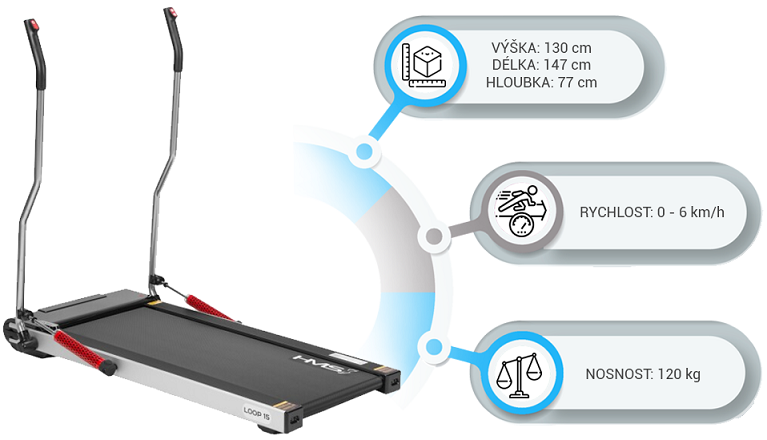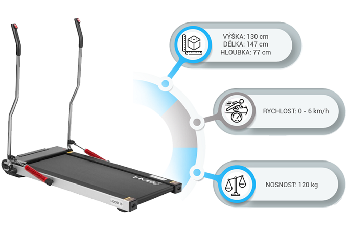 Nordic walking zapája do pohybu oveľa viac svalov, než bežná chôdza, preto je oveľa efektívnejší pri spaľovaní tukov a budovaní kondície ako práve bežná chôdza. Rukoväte sú opatrené piestami, ktoré zaručujú plynulejší pohyb pri minimálnom odpore. Maximálna rýchlosť HMS LOOP15 je 6 km/h a jej plynulá regulácia sa vykonáva pomocou tlačidiel na koncoch rukovätí. Podlhovastý displej zobrazuje prehľadne všetky potrebné údaje (rýchlosť, čas tréningu, vzdialenosť, počet krokov a počet spálených kalórií).
