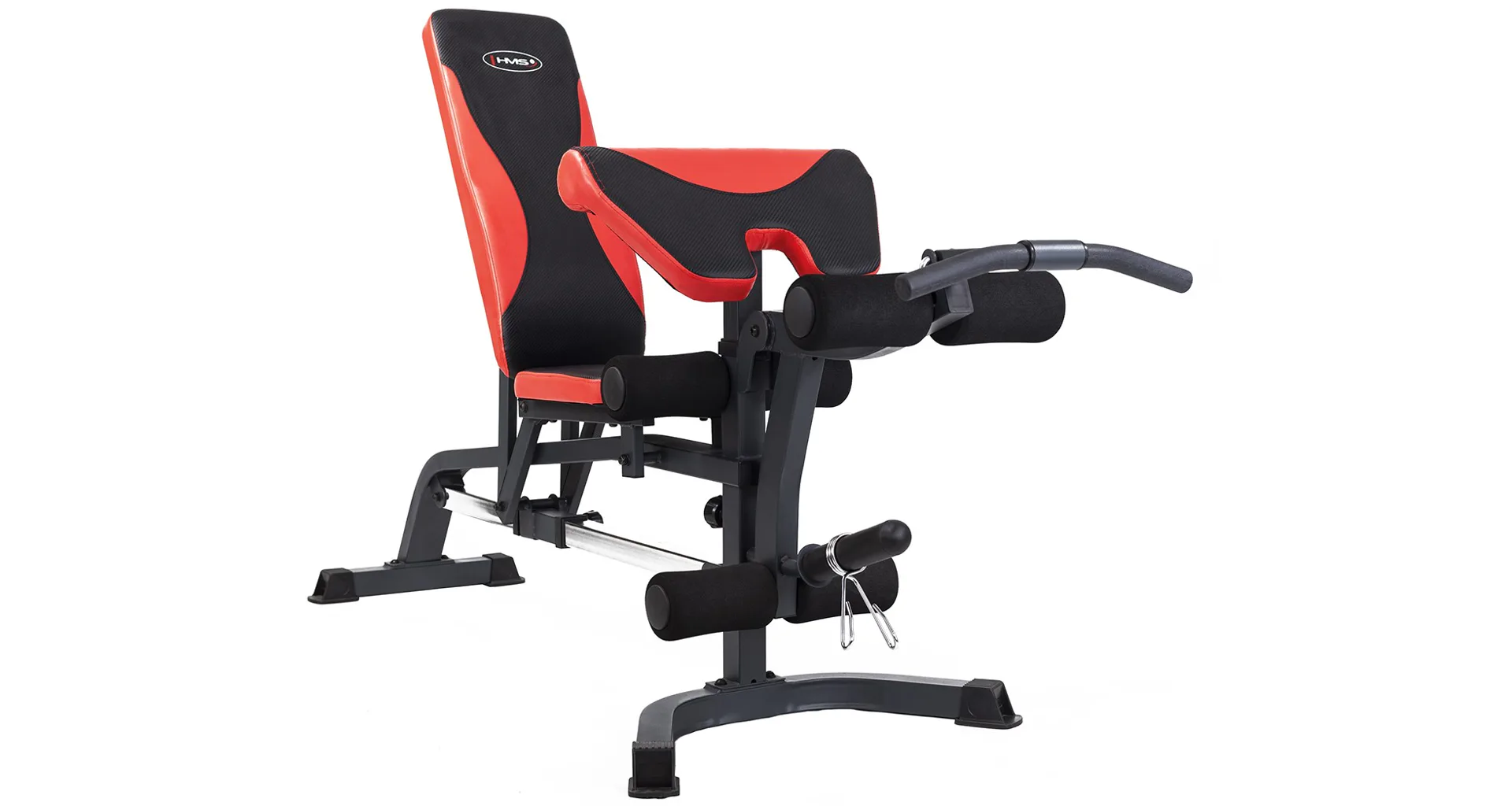 Polohovateľná lavica HMS LS 3050 s bicepsovou opierkou a predkopávaním. Lavica má nastaviteľnú chrbtovú opierku aj sedadlo pre veľkú variabilitu cvikov + možnosť nastavenia do negatívneho uhla na cvičenie hlavou dole. Maximálna nosnosť lavice je do 270 kg, pre bicepsový pult je nosnosť 35 kg a adaptér predkopávania/zakopávania 45 kg.