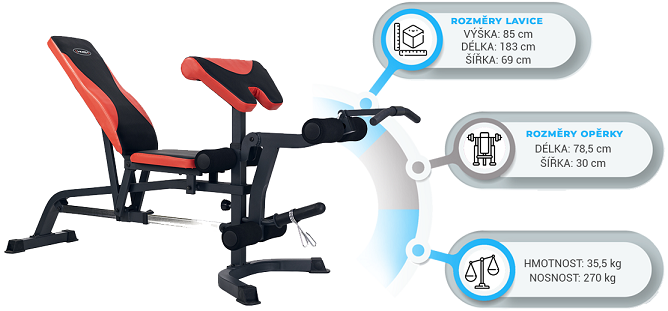 Na lavici zapojíte svaly hrudníka, ramien, triceps, biceps, predlaktia a dolných končatín. Robustné a extrémne silné oceľové profily zaistia bezpečnosť pri cvičení.