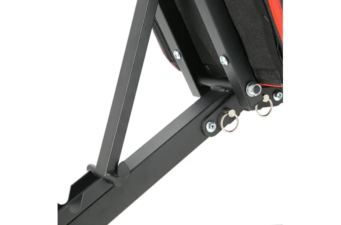 Pevná konštrukcia je stabilná a zaručuje bezpečný tréning. Pokiaľ sa lavica práve nepoužíva, tak ju možno ľahko zložiť pomocou dvoch čapov.