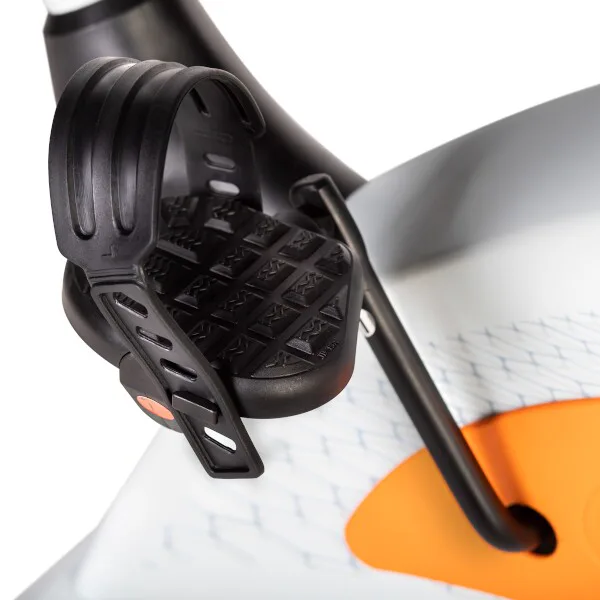 Pohodlné sedadlo je možné nastaviť vertikálne. Držadlá umožňujú nastavenie sklonu a sú vybavené integrovanými snímačmi na meranie tepovej frekvencie. Šliapací stred je miskový. Všetky dôležité informácie o priebehu tréningu zobrazuje prehľadný počítač s LCD displejom, ten je napájaný ceruzkovými batériami a zároveň slúži ako stojan na odloženie telefónu.
