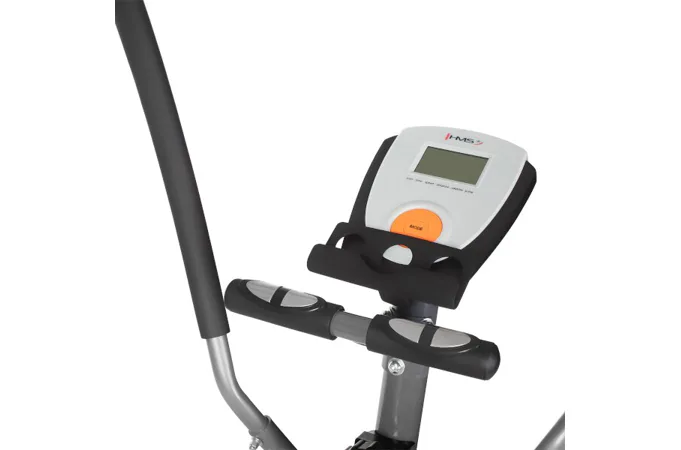 HMS H2205 má prehľadný počítač s LCD displejom, ktorý zobrazuje všetky dôležité informácie počas tréningu, pod ním má stojanček pre mobilné zariadenia a elektródy na snímanie tepovej frekvencie.