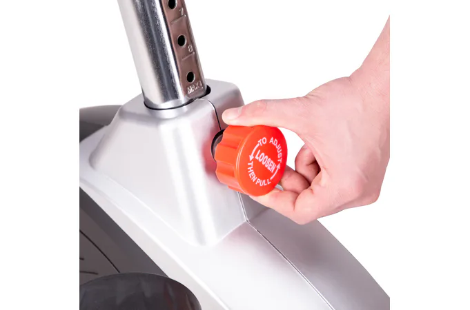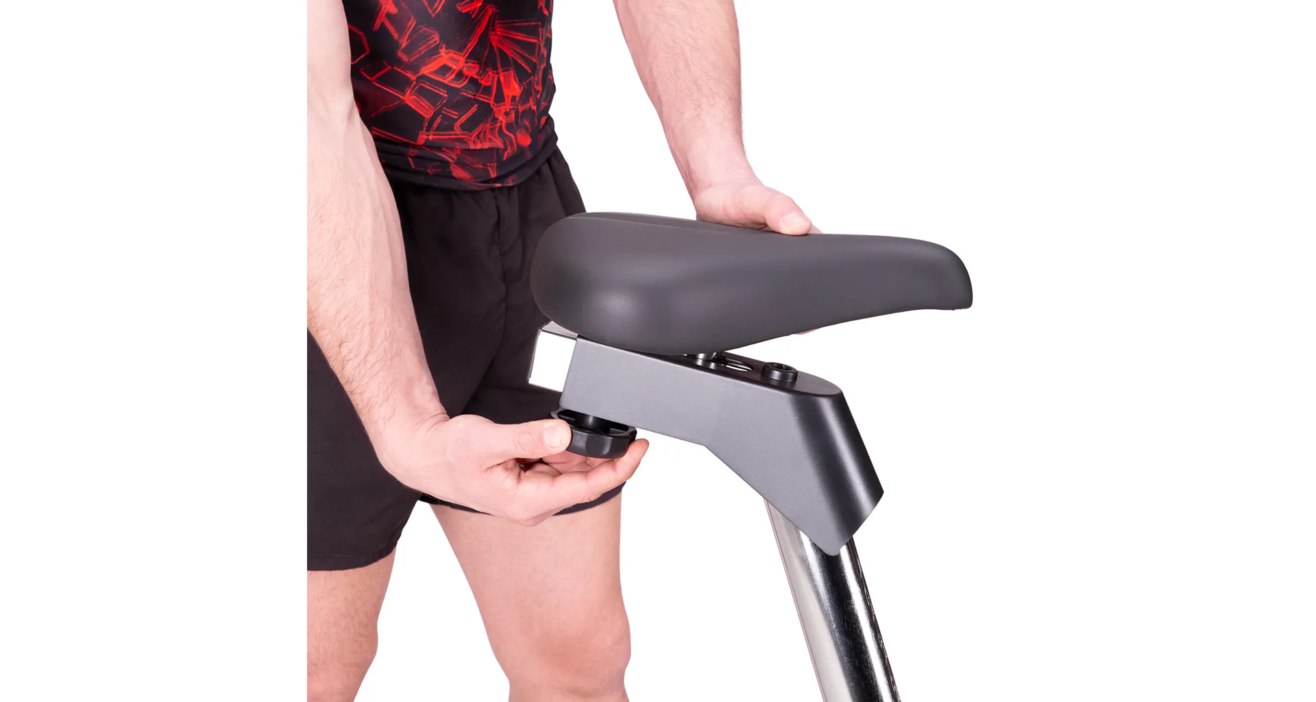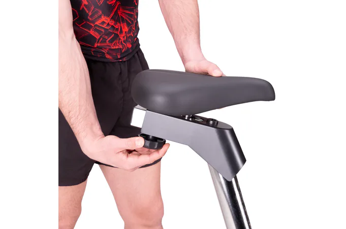 Riadidlá s elektródami na snímanie srdcového tepu, je možné naklápať. Sedadlo je polohovateľné vertikálne do 9-tich polôh a v horizontálnej rovine je umiestnené na koľajnici pre plynulý posun. Vzdialenosť stredu sedadla od pedálov sa tak dá nastaviť v rozsahu 66 - 92 centimetrov. Predný stabilizátor je vybavený kolieskami na jednoduché presúvanie. Zadný stabilizátor zase ponúka výškovo nastaviteľné podložky na vyrovnanie trenažéra do roviny.