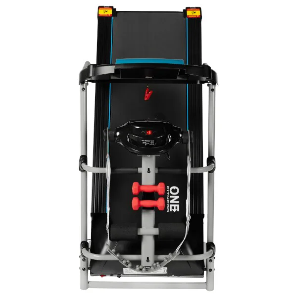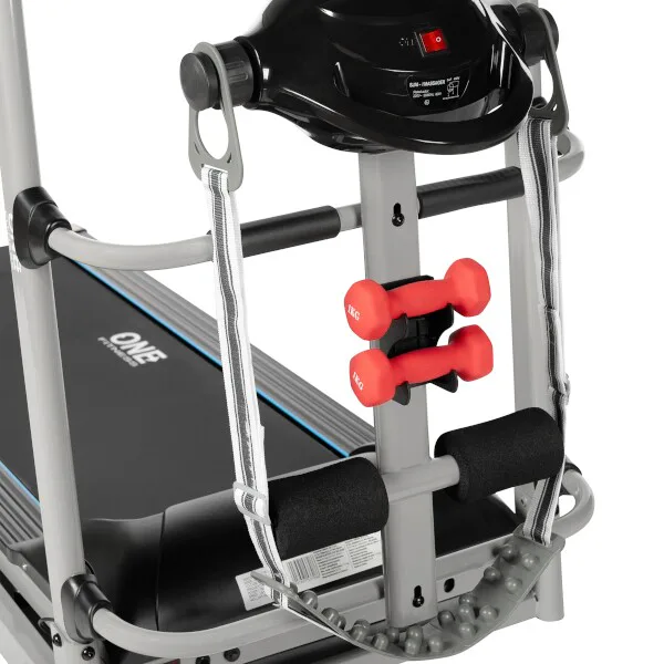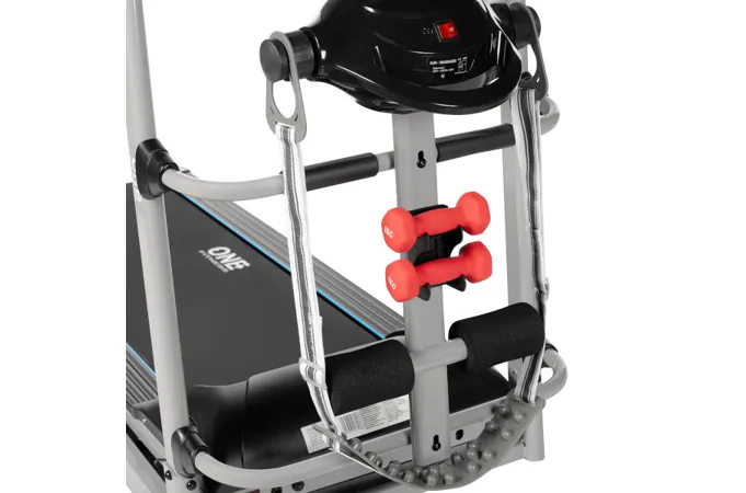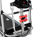 Súčasťou konštrukcie je masážna hlavica na pripojenie masážneho pásu na uvoľnenie chrbta a zarážky nôh na cvičenie sed-ľahov. V balení ďalej nájdeme rotanu a 2 ks 1 kg činiek.