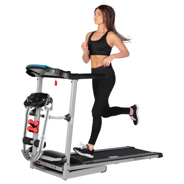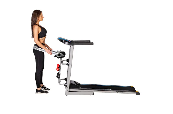 Trenažér HMS BE4540 je bežecký pás vhodný do domácností. Bežecká plocha s rozmermi 40 x 120 cm je umiestnená na konštrukcii, ktorá je od hlavného rámu odpružená pomocou 8-mich gumových valčekov. Systém odpruženia zaisťuje pohodlie počas tréningu a výrazne znižuje zaťažovanie kĺbov. Rýchlosť behúňa je plynule nastaviteľná v rozsahu 0,8 – 12 km/h. Trenažér je tak vhodný ako pre úplných začiatočníkov, tak aj pre pokročilých bežcov.