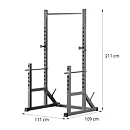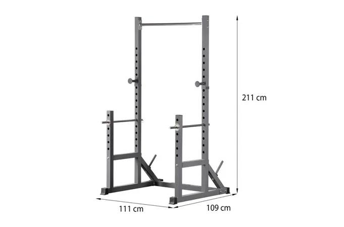 Power Rack PWS20 je vybavený hrazdou pre tréning príťahov. Okrem toho je stojan vybavený výškovo nastaviteľnými držiakmi činky, ktoré je možné prispôsobiť v 16 rôznych polohách. To umožňuje presné nastavenie výšky, čo je nevyhnutné pre cviky s činkou, ako sú drepy a benchpress.