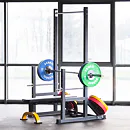 Stojan je tiež vybavený dvoma tŕňmi, ktoré umožňujú organizované a ľahko prístupné uloženie kotúčov. To nielen prispieva k funkčnosti zariadenia, ale tiež pomáha udržiavať poriadok v priestore na cvičenie. Vďaka možnosti použitia tréningovej lavice a odporových gúm, rozširuje stojan PWS20 tréningové možnosti a ponúka používateľom kompletné riešenie pre silový a funkčný tréning.