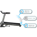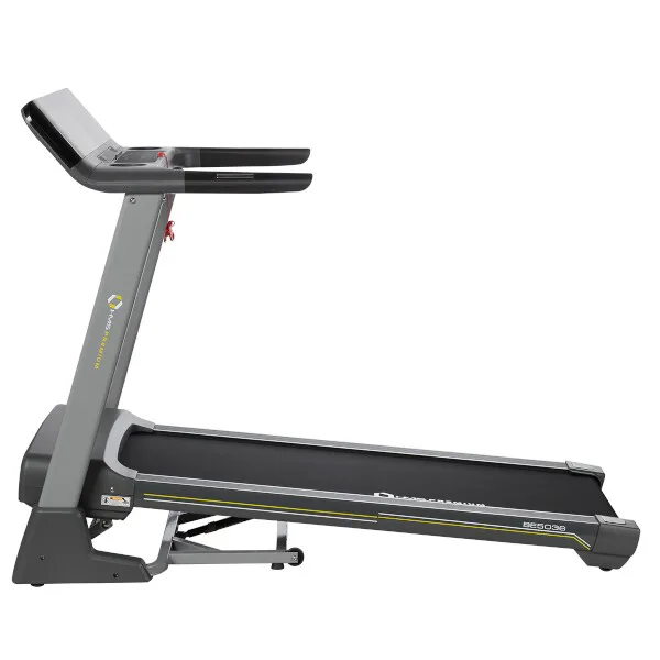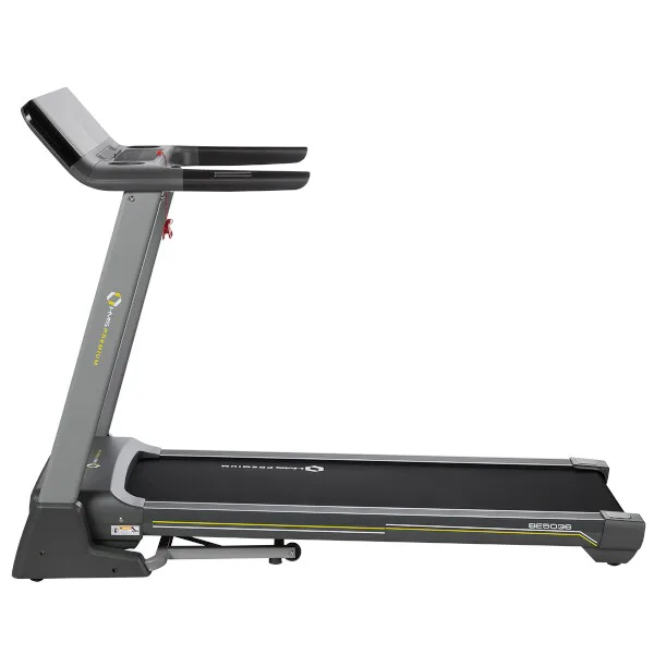 Trenažér HMS Premium BE5036 je bežecký pás vhodný do domáceho prostredia. Bežecká plocha s rozmermi 50 x 140 cm je umiestnená na konštrukcii, ktorá je od hlavného rámu odpružená pomocou vnútorného "vankúša". Funkčný systém odpruženia zaisťuje pohodlie počas tréningu a výrazne znižuje zaťažovanie kĺbov.