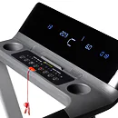 Ovládacia konzola je vybavená 2-mi rukoväťami pre rýchly úchop s elektródami na snímanie tepovej frekvencie, priestorom na odloženie fľaše, stojanom pre mobilný telefón alebo tablet, klávesnicou a monitorom.