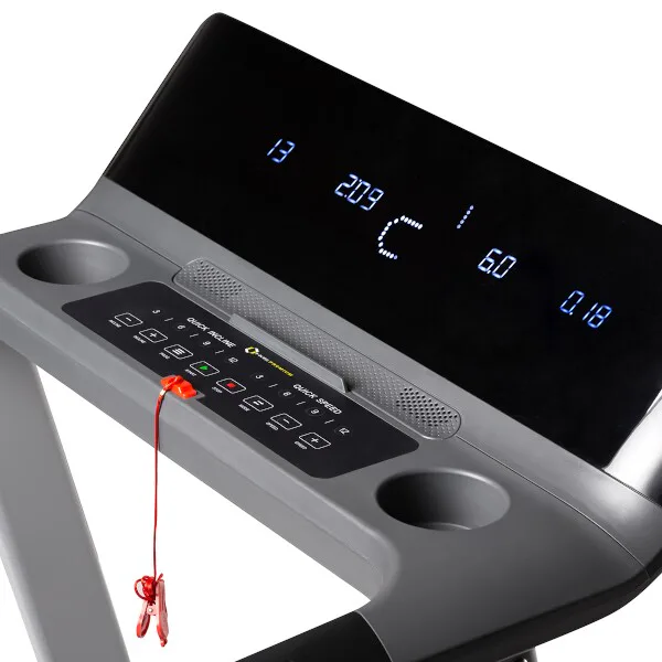Ďalej sa tu nachádzajú tačidlá pre plynulú zmenu rýchlosti a skokovú zmenu rýchlosti na 3, 6, 9 alebo 12 km/h, tlačidlá pre plynulú zmenu uhla bežeckej plochy a tlačidlá pre skokovú zmenu uhla na 3, 6, 9 alebo 12 %.