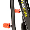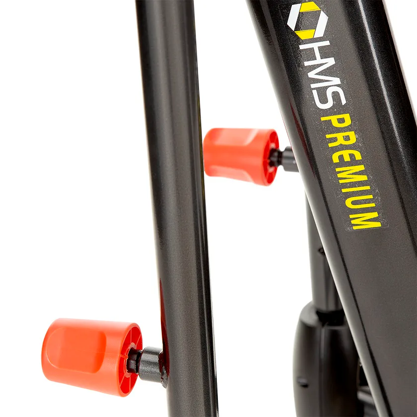 Trenažér HMS Premium H0601 má robustnú, stabilnú konštrukciu, predný stabilizátor má kolieska pre ľahký transport trenažéra a zadný stabilizátor disponuje nastaviteľnými podložkami na vyrovnanie prístroja do roviny. Pedále sú vybavené systémom na reguláciu ich náklonu, táto "vychytávka" umožňuje nastavenie úrovne s akou sa do tréningu zapájajú lýtka.