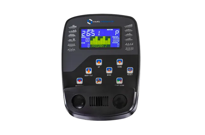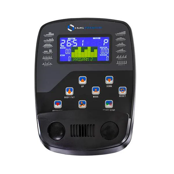 Eliptický trenažér HMS Premium H1742 je vybavený vlastným generátorom energie a nepotrebuje tak pripojenie do elektrického zdroja. Energia sa vytvára pri cvičení na trenažéri. Produkty značky HMS Premium sú charakteristické najvyššou kvalitou a funkčnosťou a celým radom možných nastavení. Trenažér je vybavený LCD displejom s 12 prednastavenými programami. Vďaka zotrvačníku v prednej časti stroja s celkovou hmotnosťou 9 kg a systémom elektromagnetickej záťaže má eliptický trenažér komfortný, plynulý a úplne tichý chod.