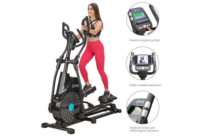 Eliptický trenažér HMS Premium H6319 je určený na intenzívny tréning v domácich podmienkach. Najväčšou prednosťou modelu je stabilná konštrukcia a 7 kilogramové záťažové koleso v kombinácii s tichou magnetickou brzdou.