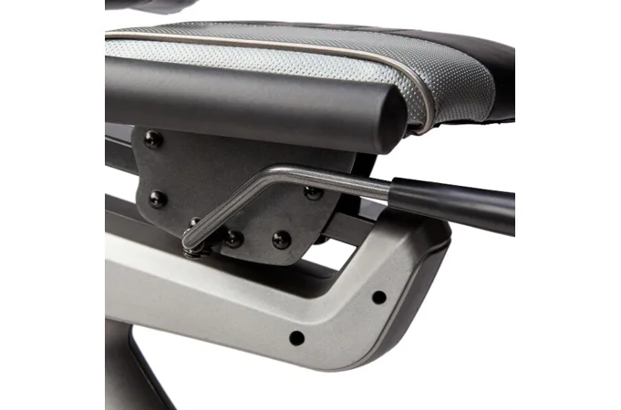 Na odloženie mobilného zariadenia slúži stojanček na konzolu hneď pod displejom. Pre maximálne pohodlie počas tréningu je trenažér R6019-i vybavený pohodlným sedadlom, ktoré je plynulo posuvné. Predný stabilizátor má transportné kolieska, na zadnom stabilizátore nájdete 2 skrutkovacie nožičky pre vyrovnanie prístroja do roviny a rukoväť pre ľahký transport.