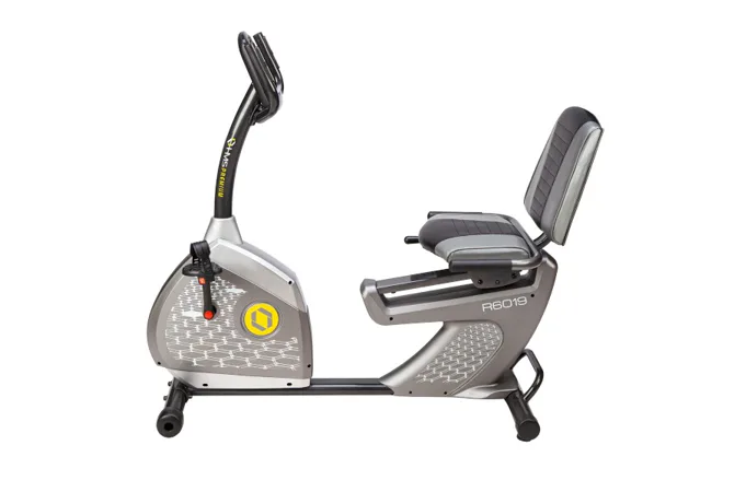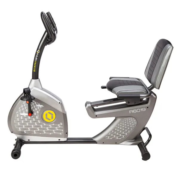 Recumbent, alebo aj horizontálny rotopéd HMS Premium R6019-i v sebe spája vysokú kvalitu, funkčnosť a jednoduchosť obsluhy. Ide o trenažér, ktorý dokáže zlepšiť celkovú kondíciu a zredukovať tukové vankúšiky. Stabilná konštrukcia a kvalitné materiály sú zárukou dlhej, bezúdržbovej prevádzky. Systém magnetického odporu je tichý, vďaka tomu nebudete tréningom rušiť ostatných členov domácnosti a trenažér si môžete napríklad umiestniť aj do obývačky k televízii.