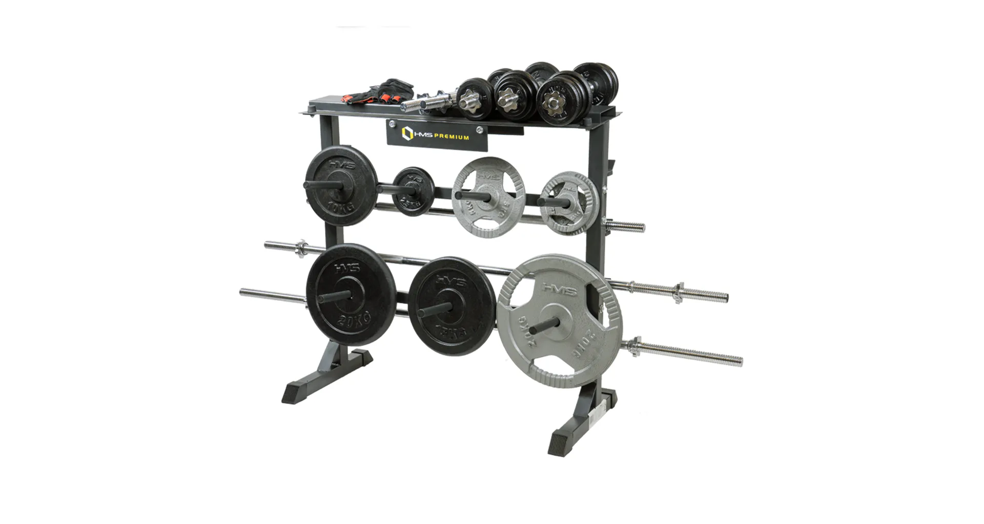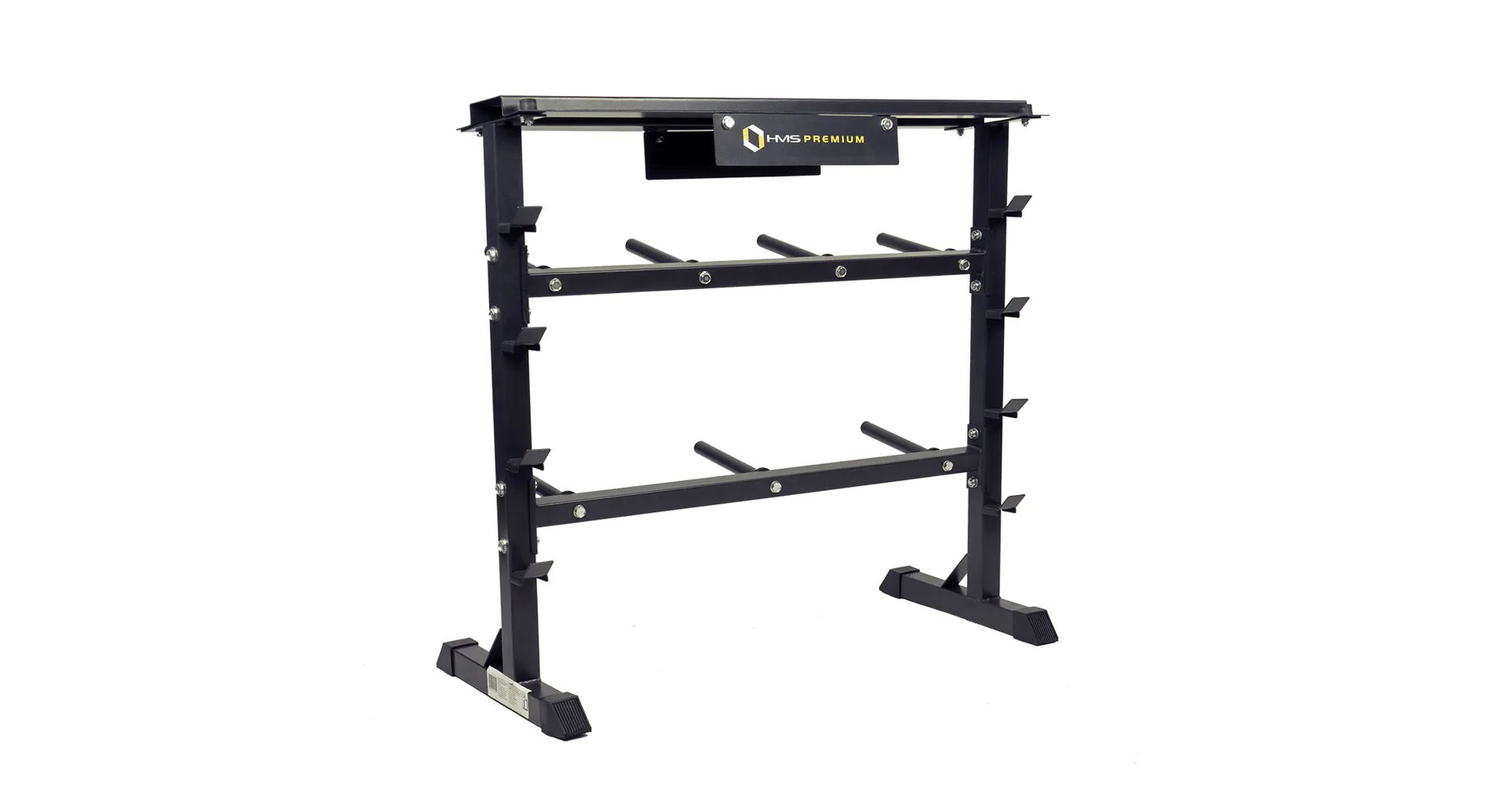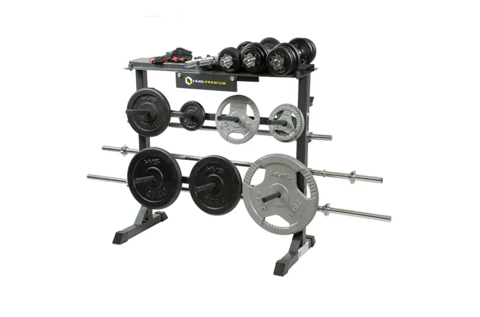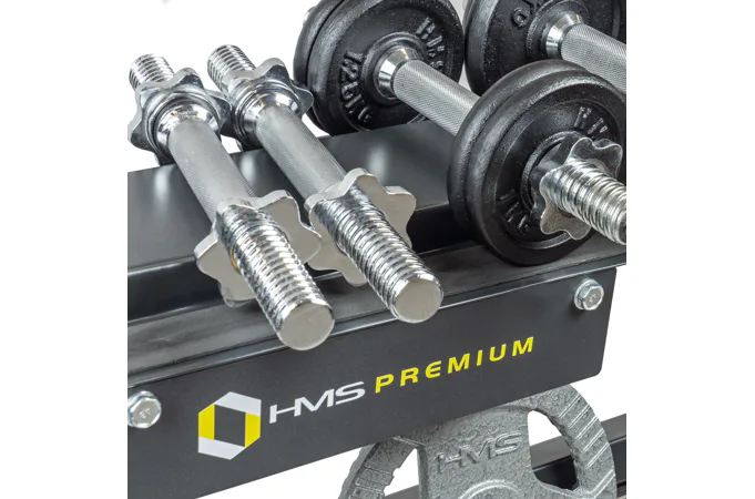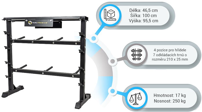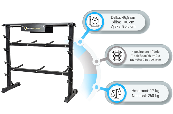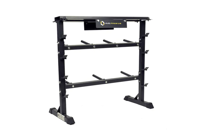 Stojan HMS Premium STR12 je navrhnutý na ukladanie kotúčov a hriadeľov. Stojan disponuje 4-mi pozíciami pre osi, 7-mimi tŕňmi pre kotúče a hornou plochou pre jednoručné činky. Odkladať naň môžete náčinie do celkovej hmotnosti 250 kg. STR12 je vyrobený s ohľadom na bezpečie užívateľov aj odkladaného náradia z kvalitných oceľových profilov.
